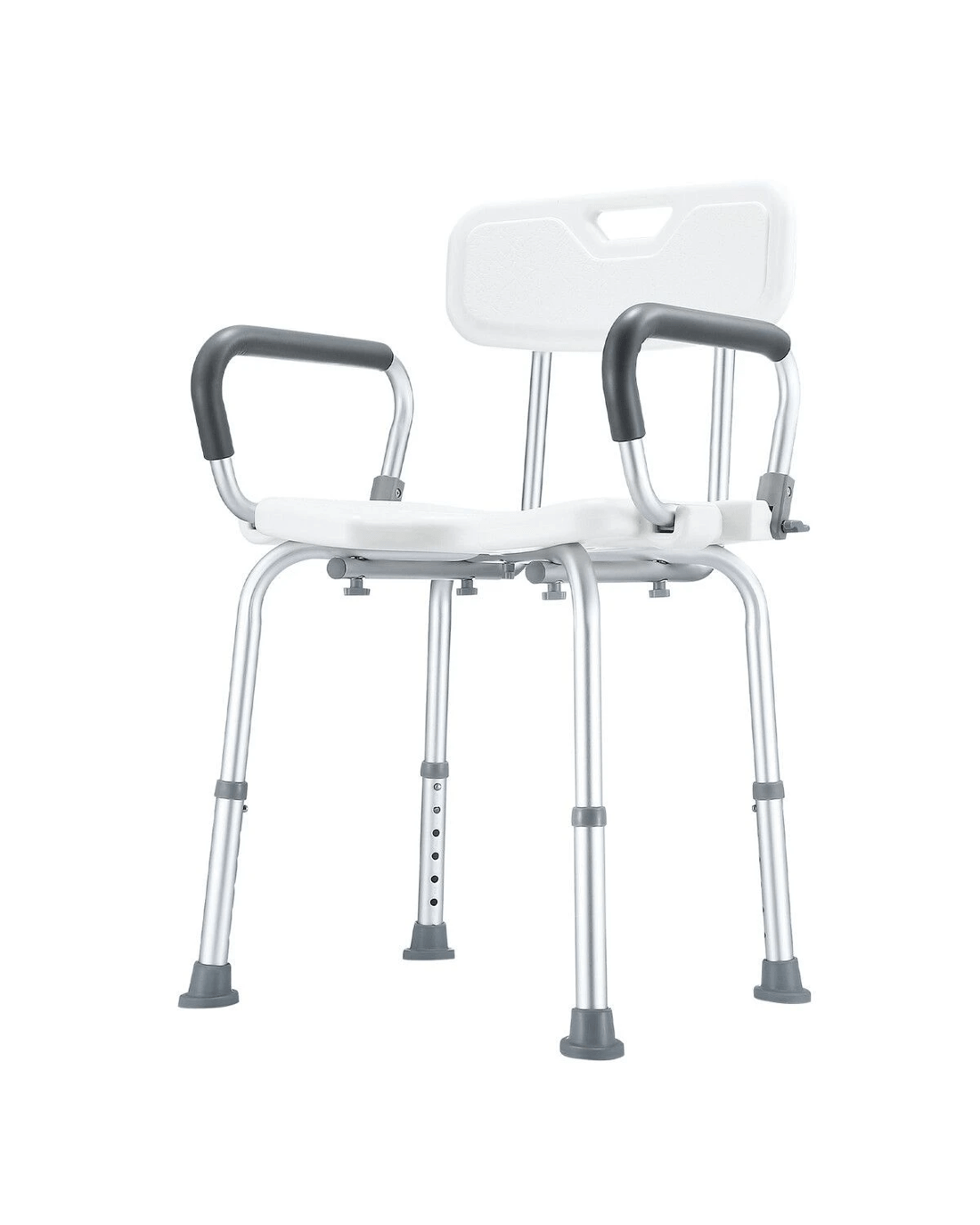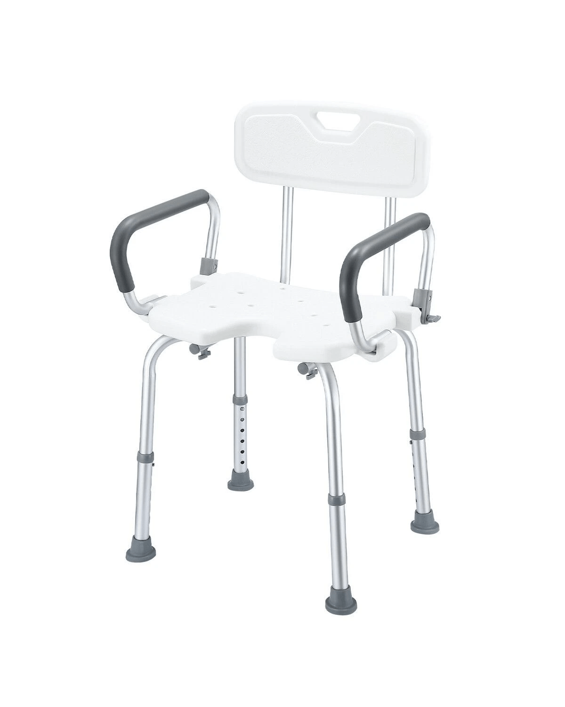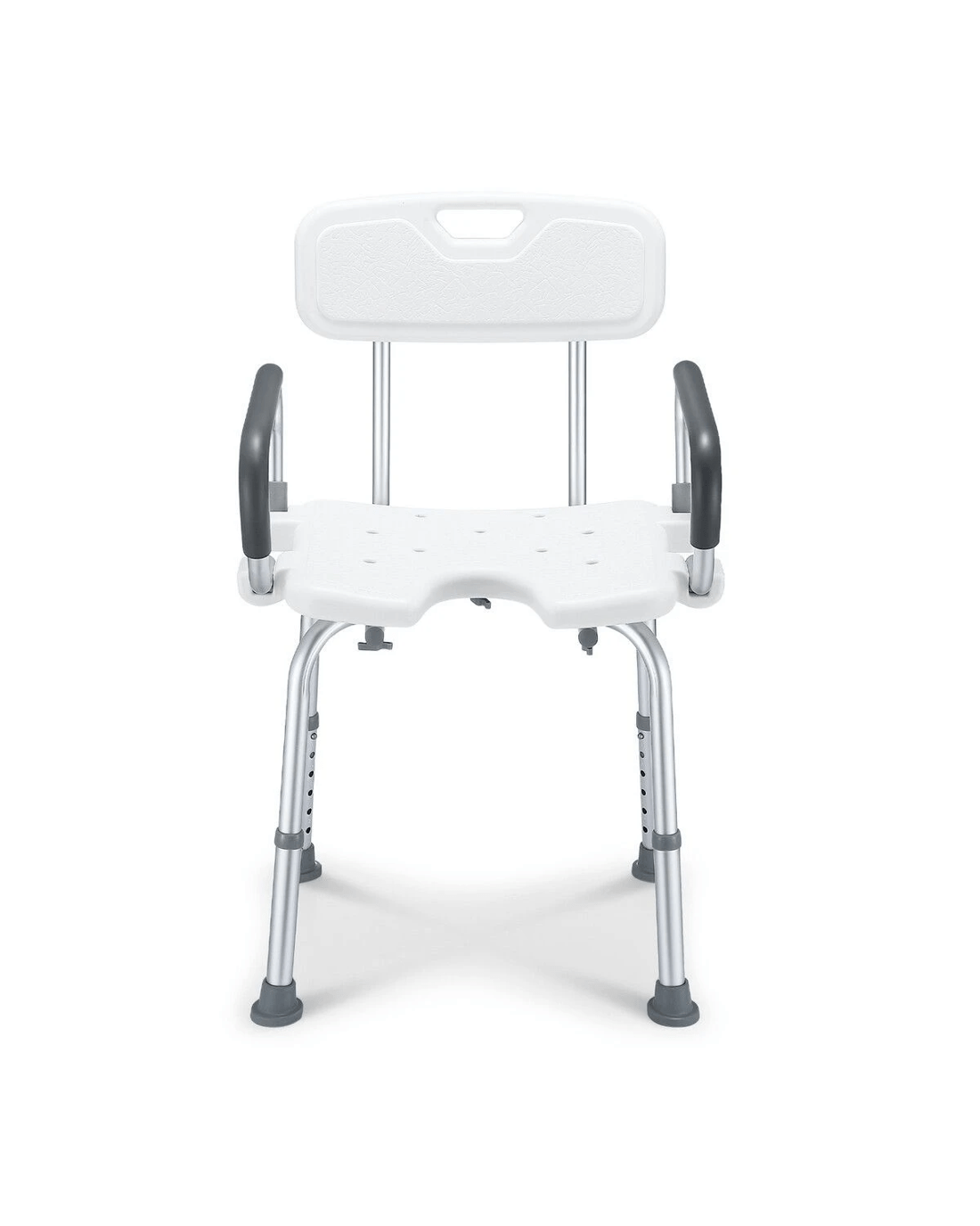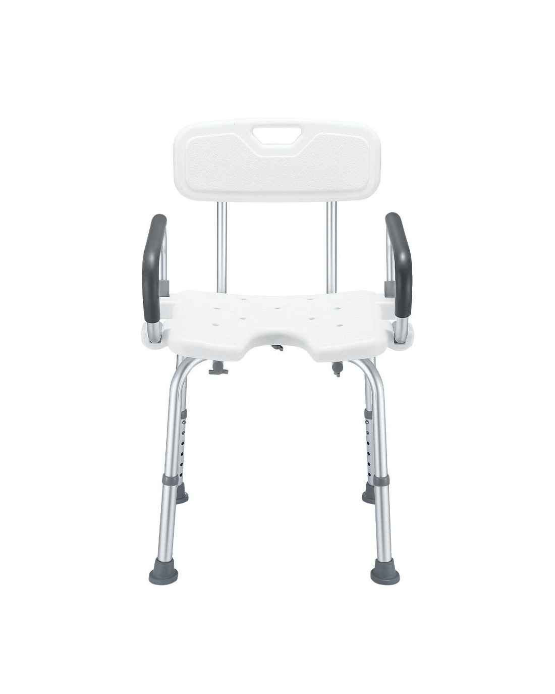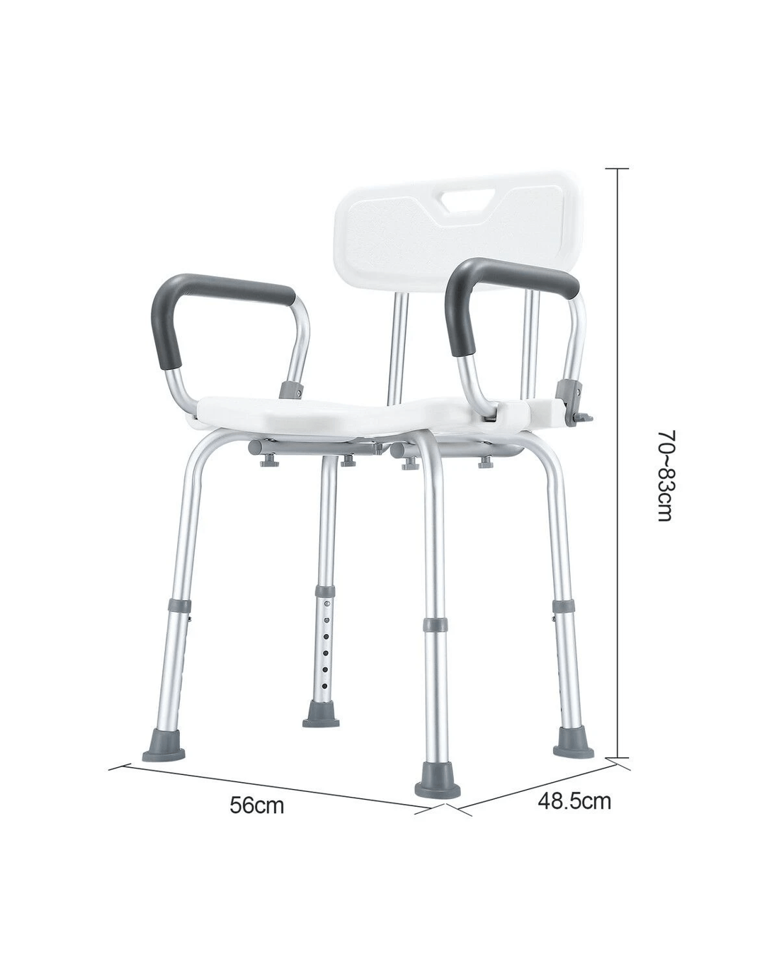 Give your parents peace of mind when showering by using this Shower Chair Seat Bath Stool. Crafted with a robust aluminium structure and a comfortable PE seat, the shower stool is strong enough to support a weight of up to 150kg yet lightweight for easy movement. There are drainage holes on its seat to avoid water accumulation. Besides, this bath seat is incredibly durable for daily use and fully adjustable to fit a wide variety of heights. For additional stability, it comes equipped with four rubber feet to prevent slipping. Thanks to the sturdy arms, this bathroom stool provides maximum convenience for users to lift up and down, making it ideal for the elderly, injured, pregnant, and disabled.