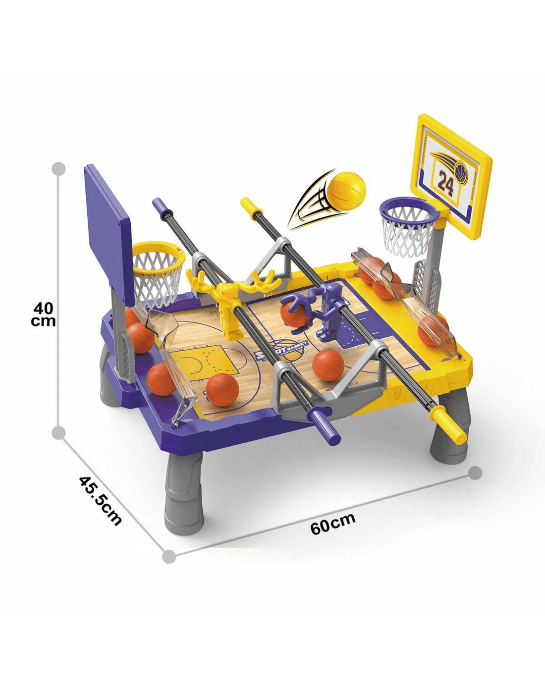 Get ready to be enthralled by this foosketball basketball table. This tabletop game is a perfect blend of foosball and basketball that guarantees endless excitement and entertainment. Children can practise their shooting skills, aim for the baskets, and strategically manoeuvre the football players. This not only fosters interactive play and friendly competition among children but also promotes hand-eye coordination and strategic thinking and builds confidence. Ideal for indoor and outdoor play, this lightweight and compact tabletop basketball game can be set up in a playroom, backyard, or at a family gathering and offers convenient storage after playtime. Made for kids of all ages and skill levels, this fun basketball game table promises safety and durability for years of intense imaginative play.