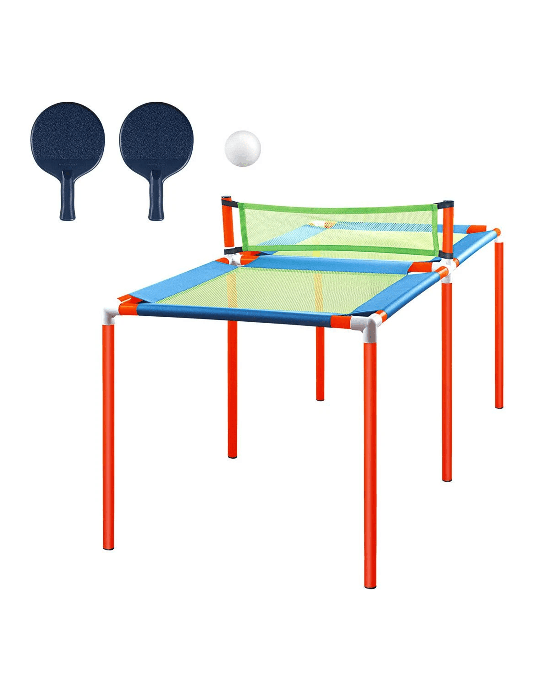 It's important that kids have fun and enjoy participating. Our Compact Table Tennis Table Ping Pong Trampoline Set lets both kids and adults bounce, smash, and laugh together. Ideal for family gatherings, parties, or casual play, this exciting twist on a classic game delivers friendly competition for all ages and skill levels. Loaded with a durable PVC frame and weather-resistant net, this ping pong table is built for all-day fun indoors or outdoors. And the lightweight design and included travel bag make it easy to take anywhere and turn any space into a game zone. Moreover, this ready-to-play set contains two paddles and three weighted balls for a stable, safe playing experience. Besides, quick assembly makes it perfect for game rooms, apartments, offices, or anyone who wants big fun without a full-size table.