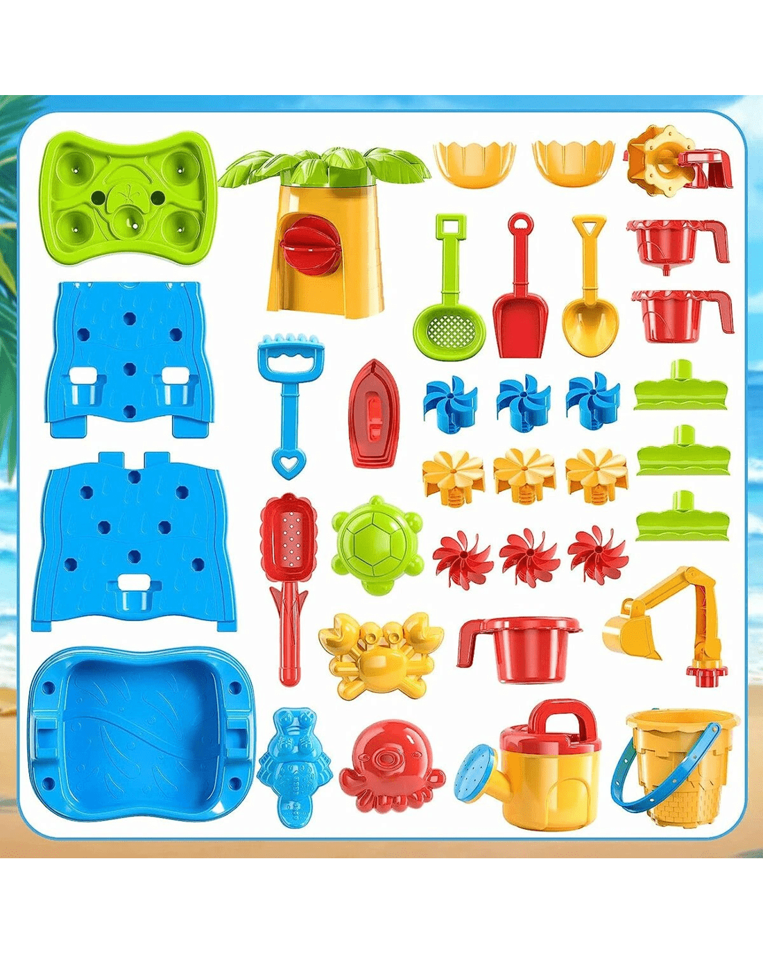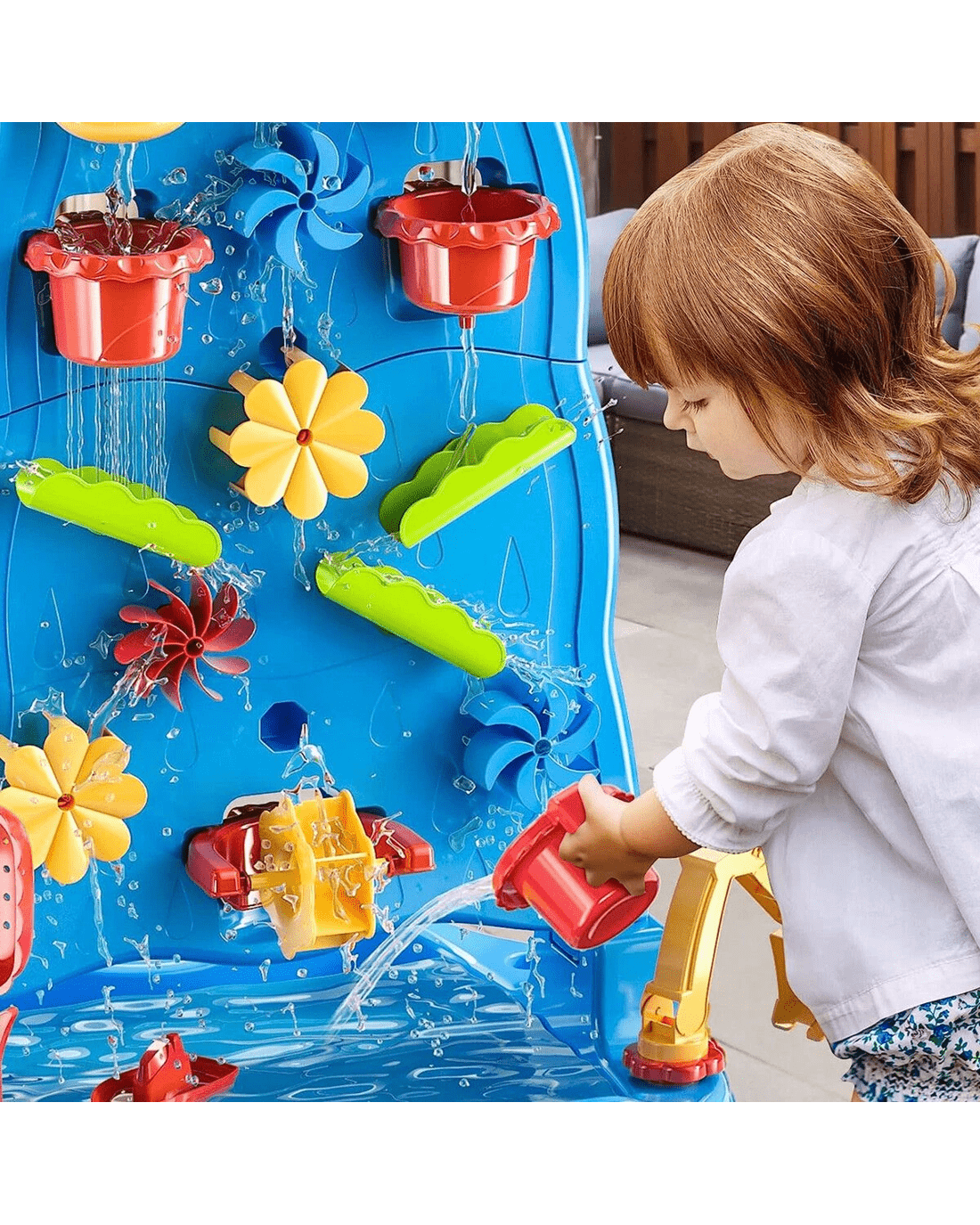 - Endless Fun: Kids water play set features a two-sided design for sand and water play. It includes the water table, water tower, spoons, watering pot, bucket, and sand beach toys like animal moulds, shovels, etc. Promote cognitive and imaginative development