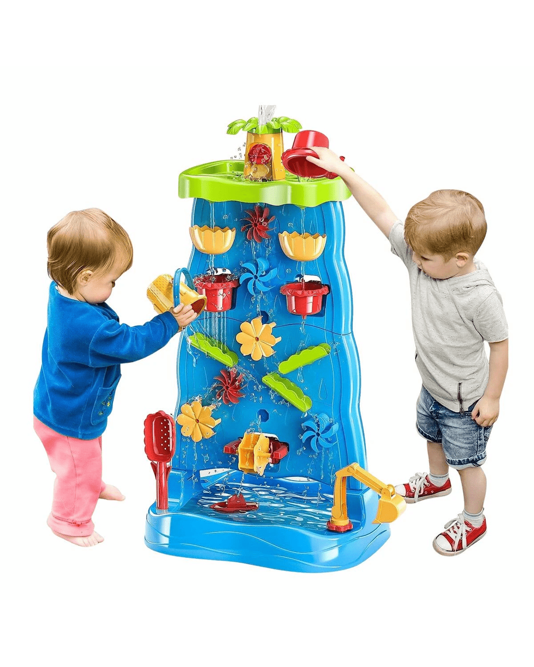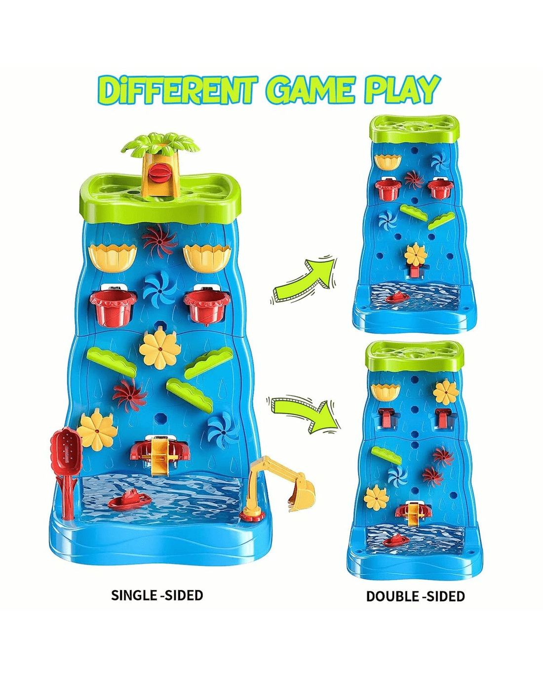 - Water Wall Fun: Scoop up water from the bottom basin and pour it into the top to start the waterfall set that is composed of water wheels and funnels. It is a double-sided water wall for water accessories to be installed or moved to create different game play