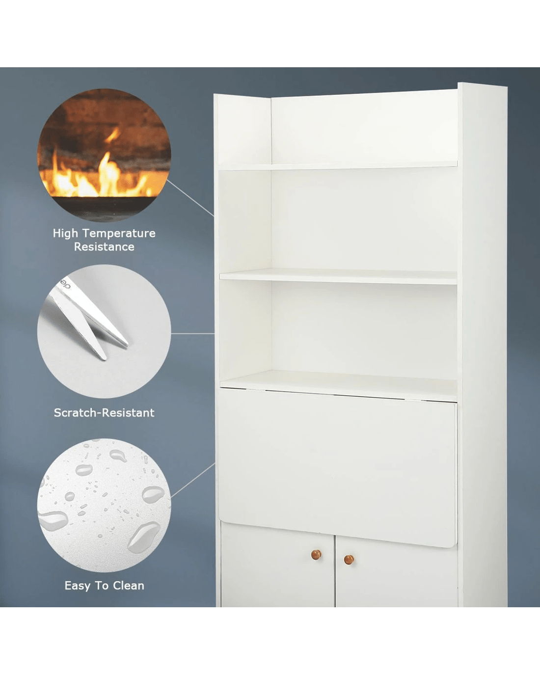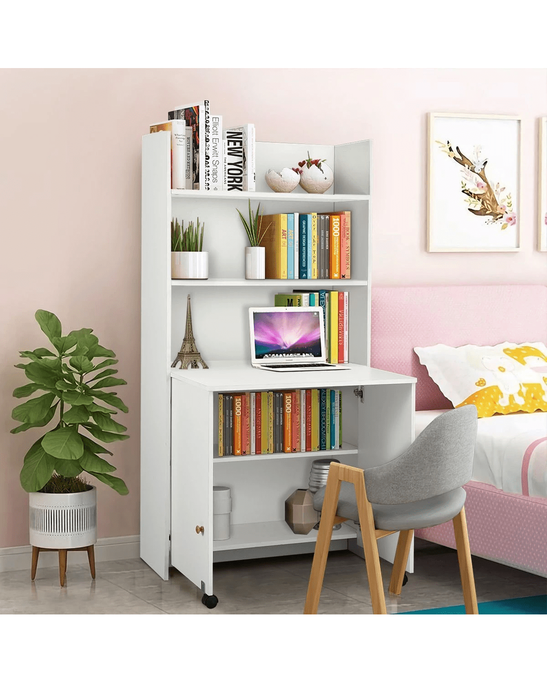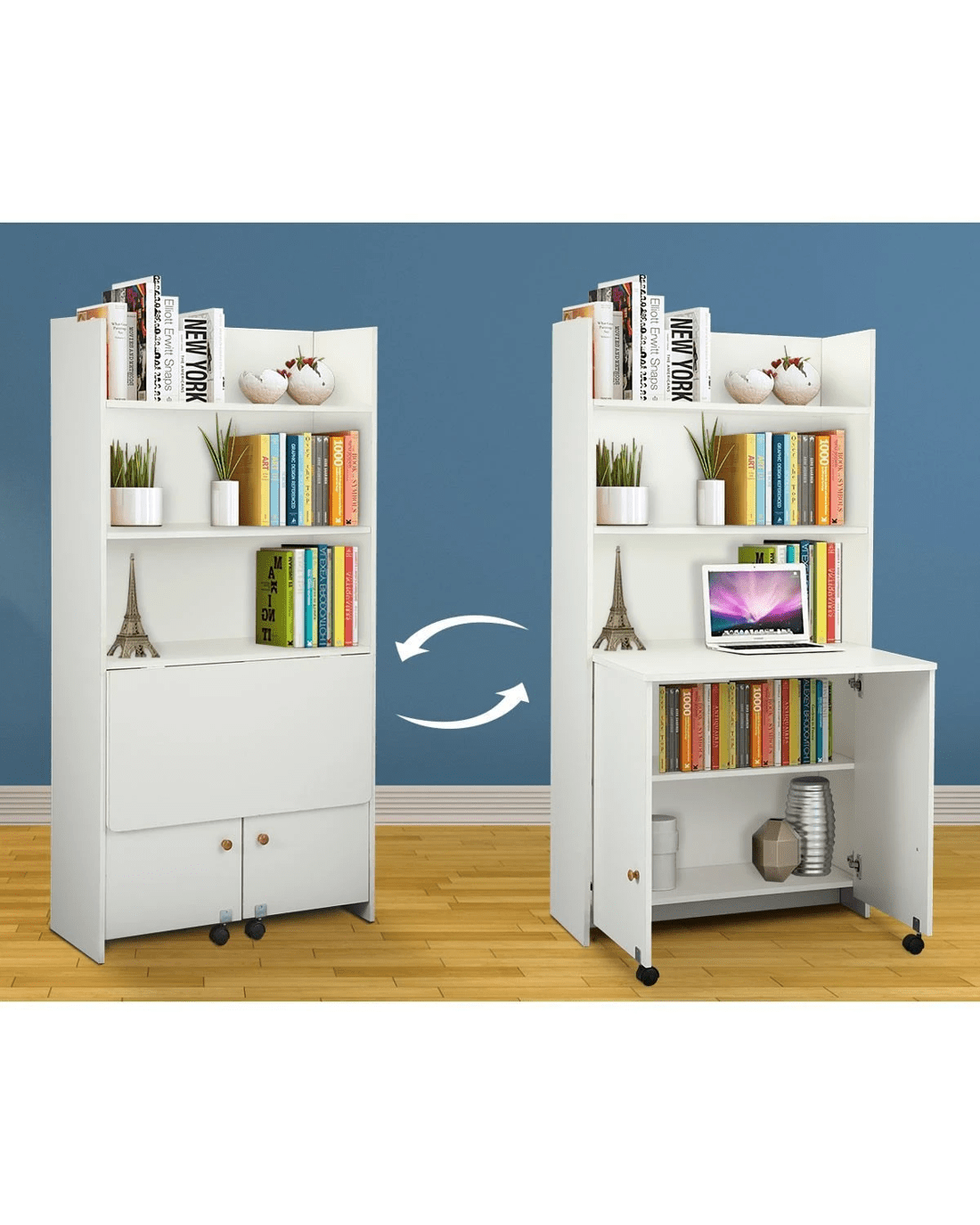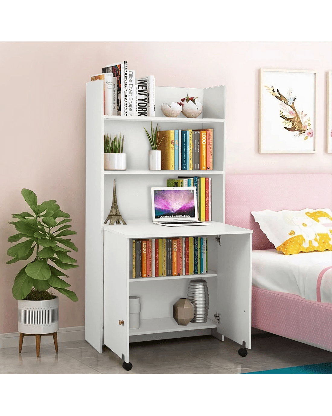 - Opening the two cupboard doors can become a desk, and there are two bookshelves under the desk