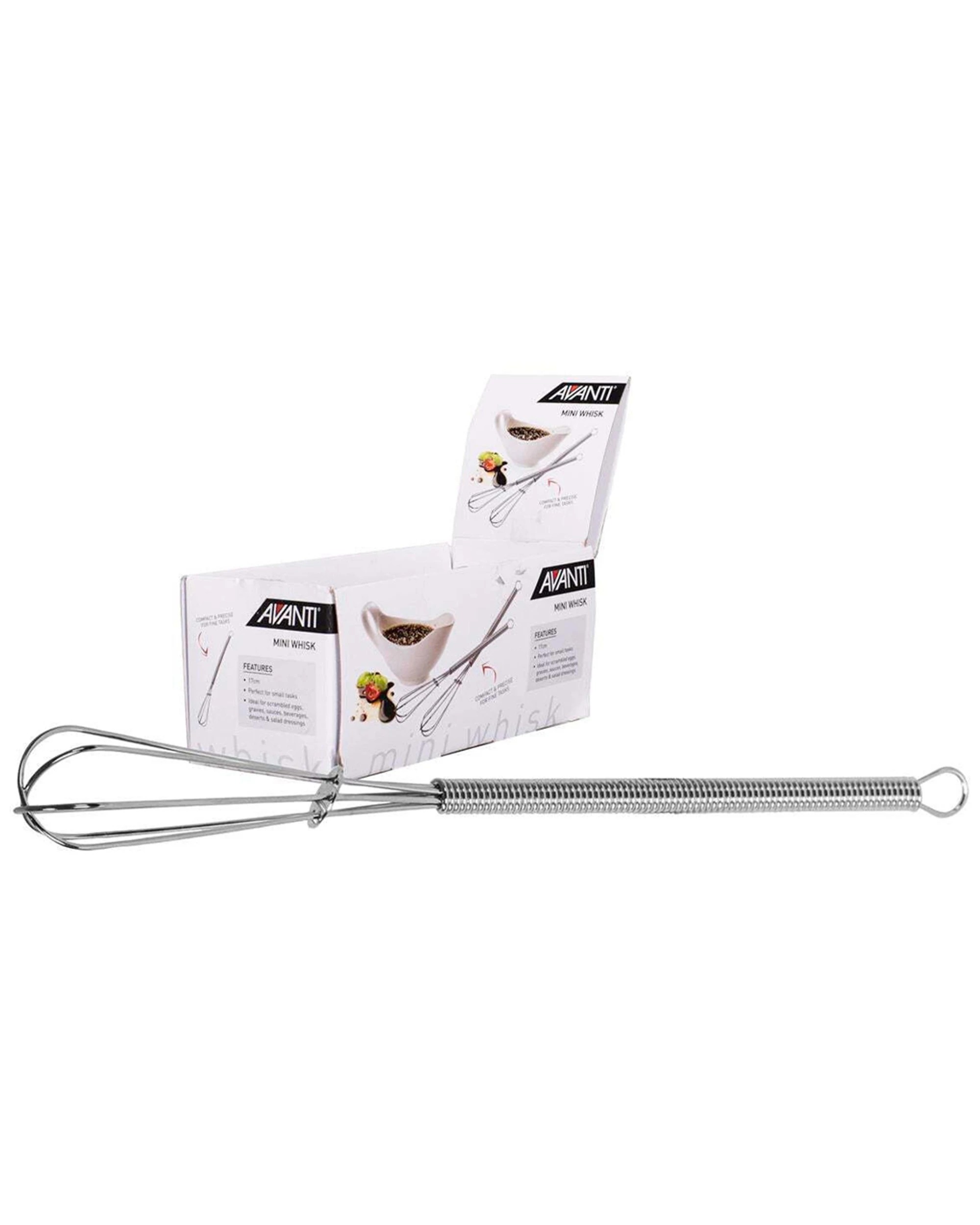 Avanti 18cm Mini Whisk Stainless Steel Compact Kitchen Utensil With Loop - Silver
