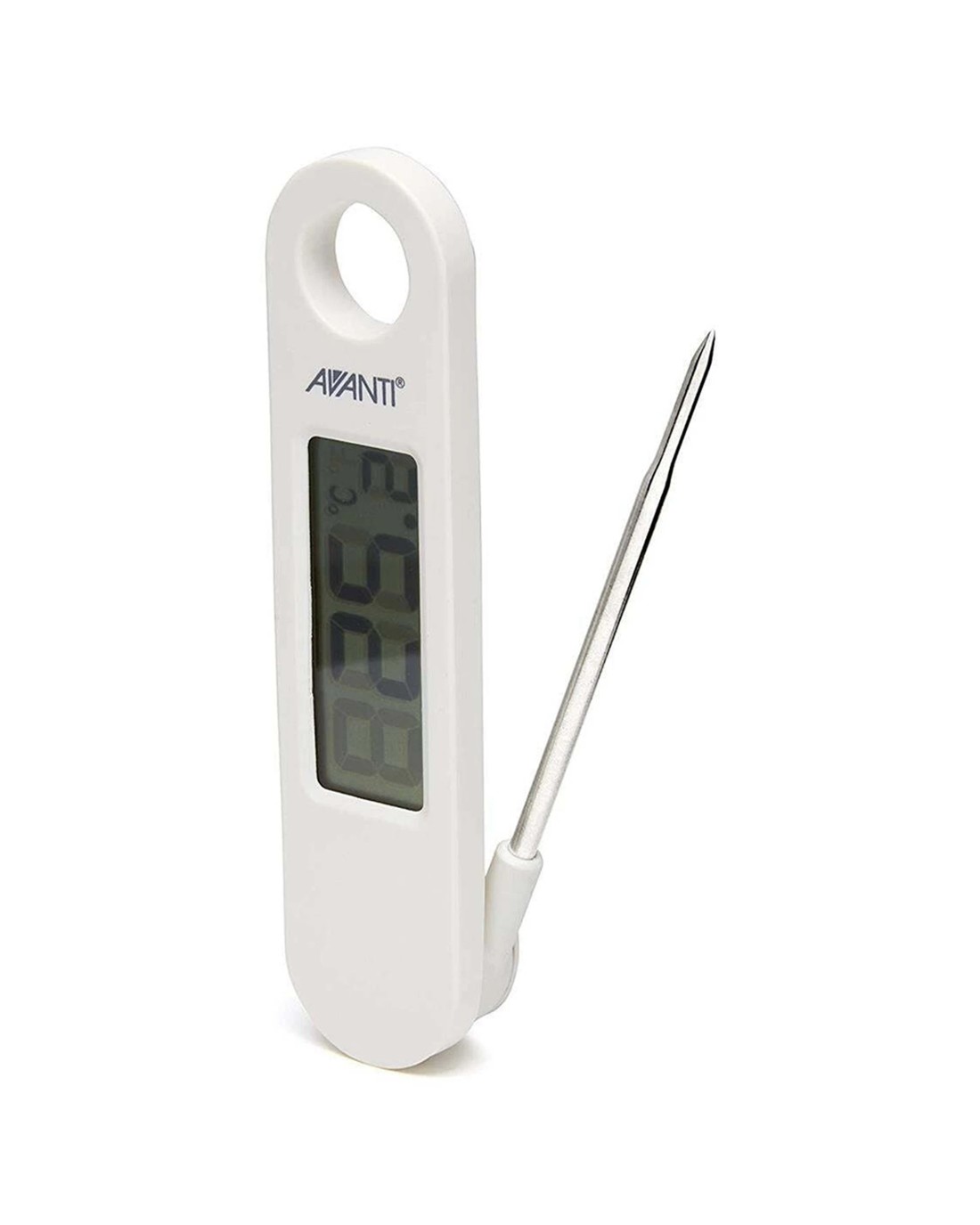 The AVANTI Folding Steak Thermometer is designed for precise cooking temperature measurement, whether you are grilling outdoors or preparing meals in the kitchen. It helps ensure your meat is cooked perfectly every time, thanks to its accurate digital readings and versatile features.This thermometer features a broad temperature range from minus fifty degrees Celsius to two hundred degrees Celsius, supporting a variety of cooking needs. Its digital display provides clear, instant temperature readings, making it easy to monitor your food's progress. The probe folds away for simple storage, and the device includes a battery for immediate use, making it a convenient addition to your culinary tools.Key Features:Precise Temperature Control: The digital display shows accurate temperature readings for perfect cooking results.Flexible Temperature Settings: Easily switch between Celsius and Fahrenheit to suit your preference.Compact Storage: Folding probe design allows for easy storage in kitchen drawers or utensil racks.Ready to Use: Comes with a LR44 battery included, so you can start cooking immediately.Versatile Temperature Range: From minus fifty degrees Celsius to two hundred degrees Celsius, suitable for all your cooking and grilling needs.Specifications:Brand: AVANTIProduct Type: Kitchen GadgetDisplay: Digital LCDTemperature Range: -50C to 200CSwitchable Units: Celsius and FahrenheitProbe: Foldable for easy storageBattery: LR44 included