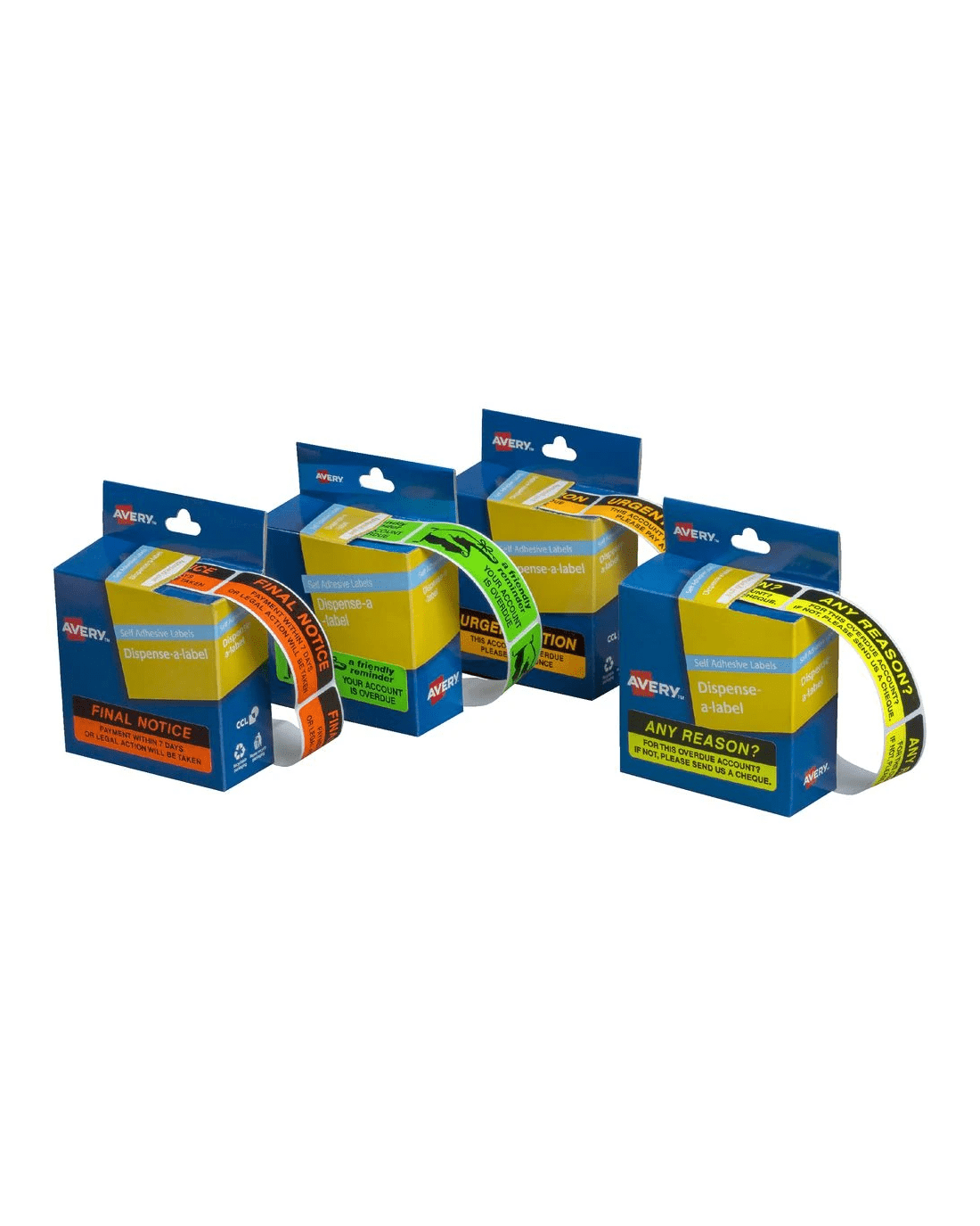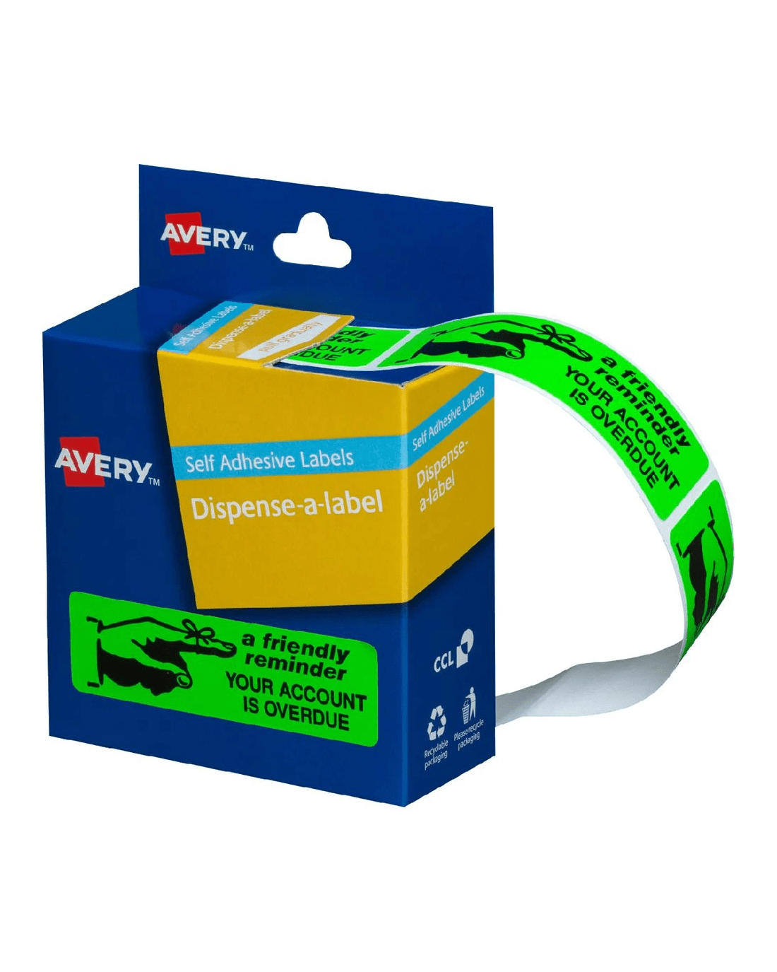 These Avery Labels are pre-printed with 'Friendly Reminder' and space to write the customer's name, enabling you to easily and efficiently mark your documents. They are temporarily adhesive meaning they can be removed from items without leaving behind any damage. They are packaged on a roll and in a carton for easy dispensing.