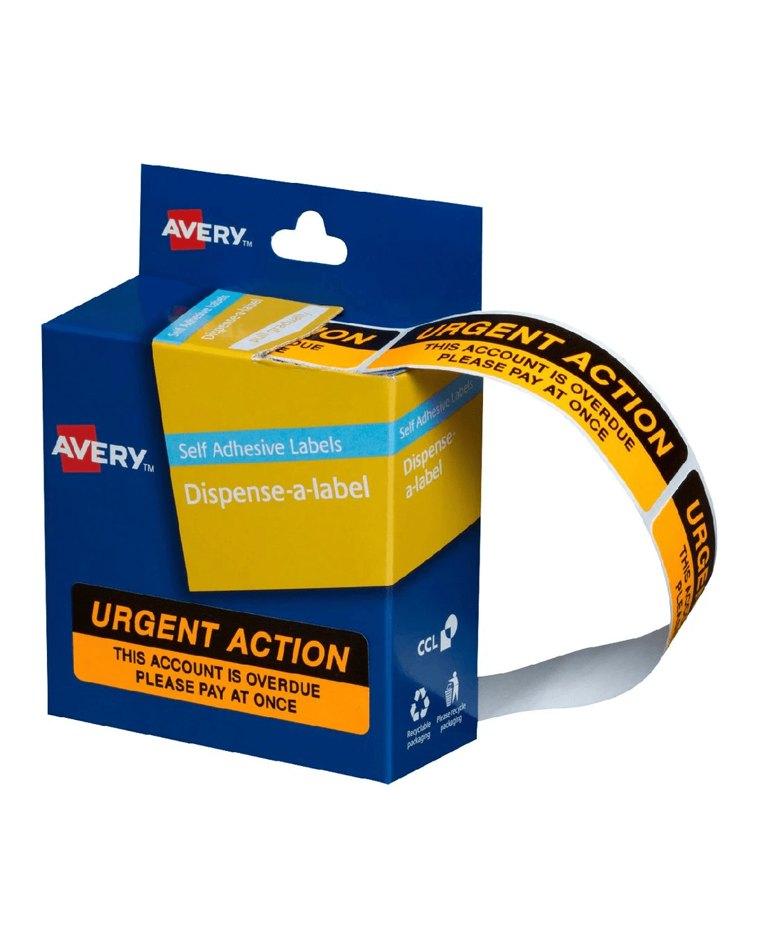 These Avery Labels are pre-printed with 'Urgent Action' and space to write the customer's name, enabling you to easily and efficiently mark your documents. They are temporarily adhesive meaning they can be removed from items without leaving behind any damage. They are packaged on a roll and in a carton for easy dispensing.