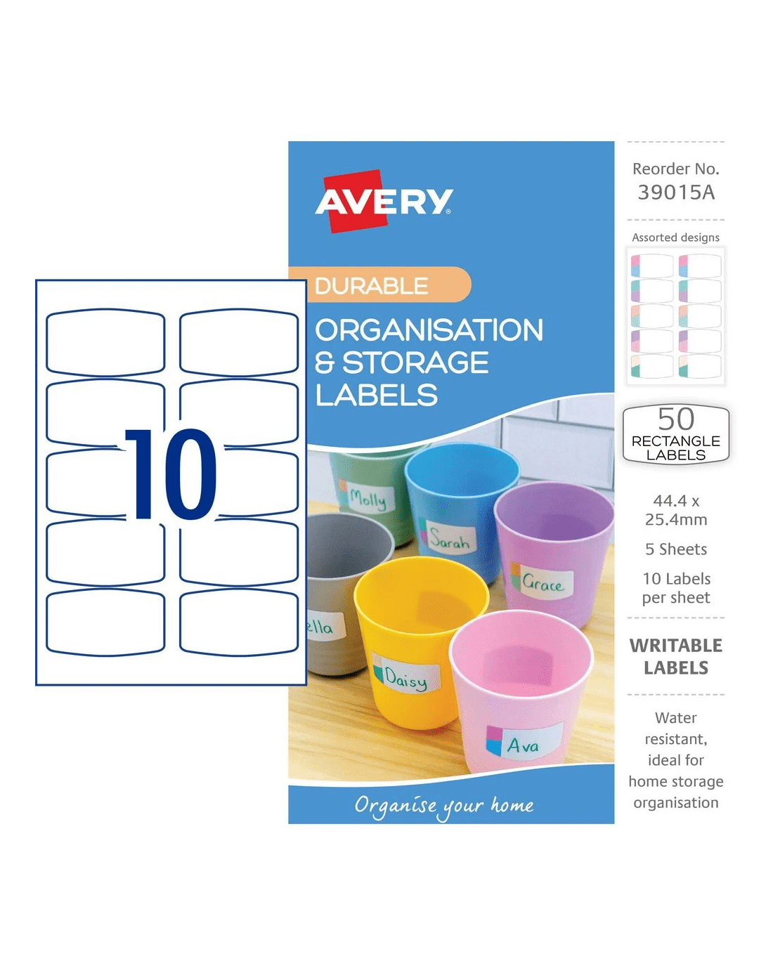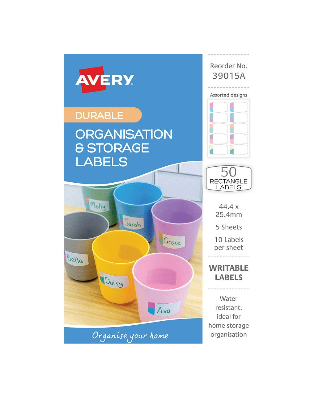 This Avery Durable Organisation & Storage Labels are made from a sturdy material that is resistant to water as well as hot and cold temperatures, making them ideal for use on storage containers or boxes. They are perfect for the kitchen and all other rooms in the house because they stick securely and remove cleanly when needed, allowing you to easily change or update information. These reliable labels won't fray or fall off over time, giving you organisation that lasts while adding a sophisticated look to your storage.