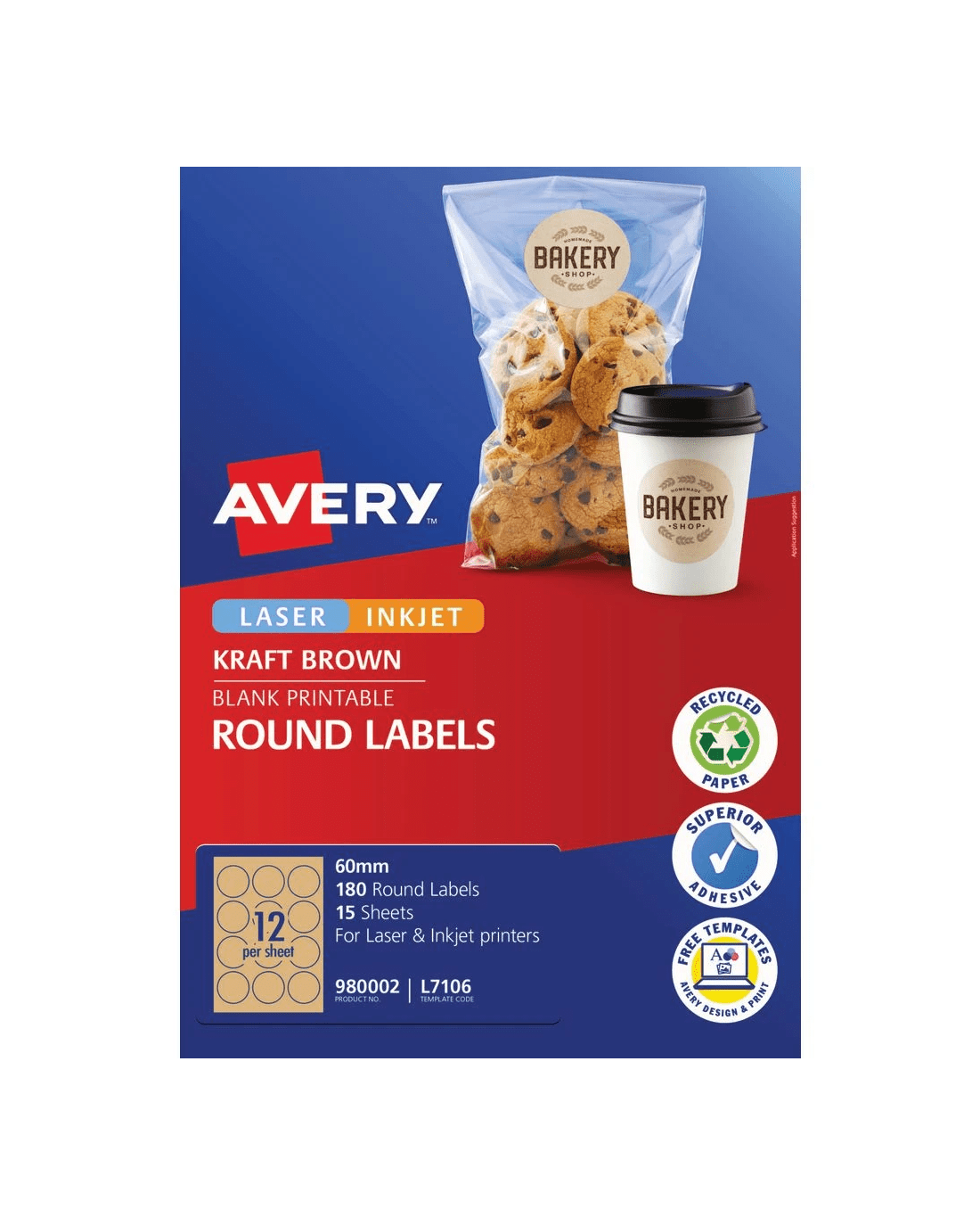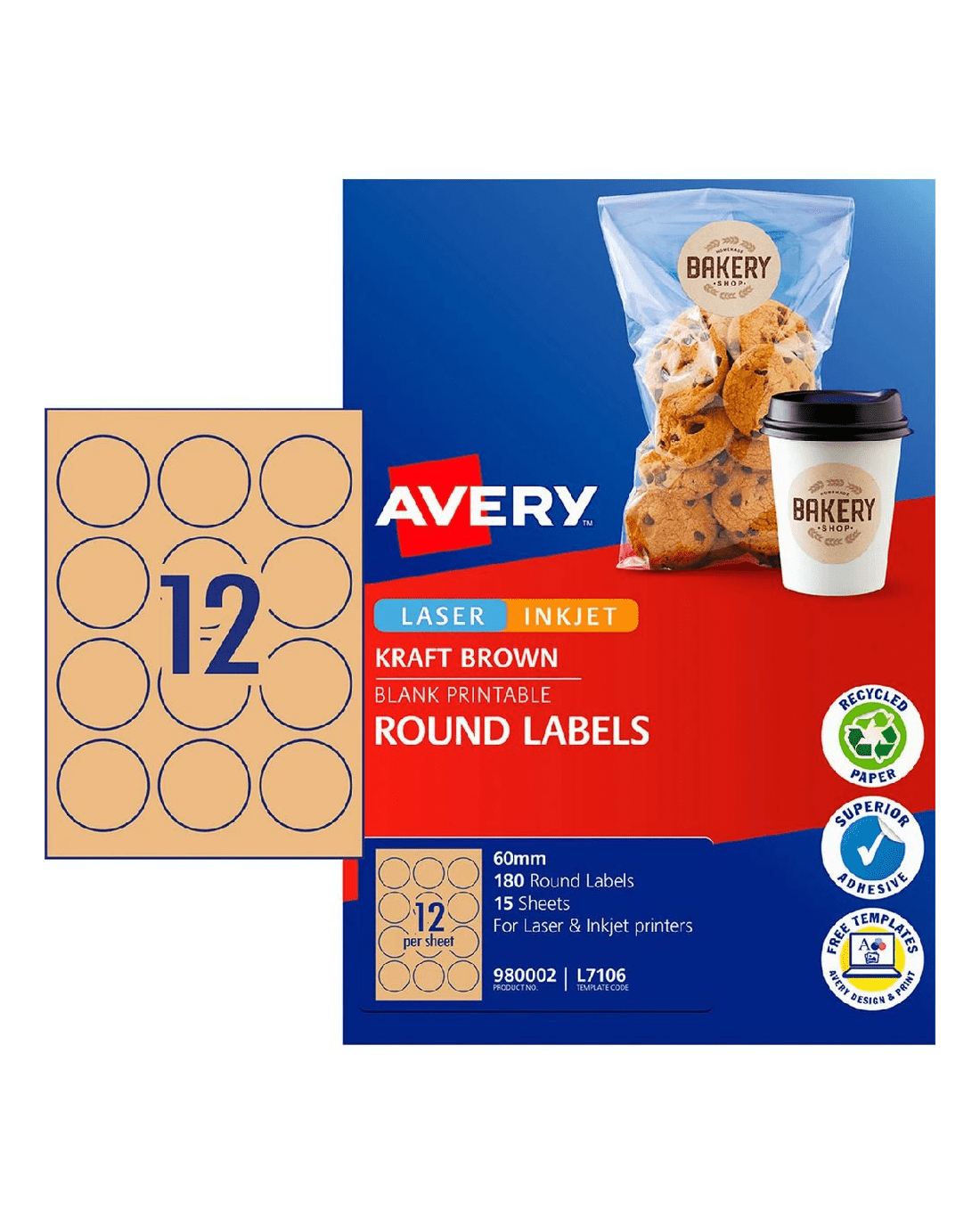 Sold by OfficeworksAvery 12UP Inkjet Laser Round Labels 60mm Kraft 15 Sheets
