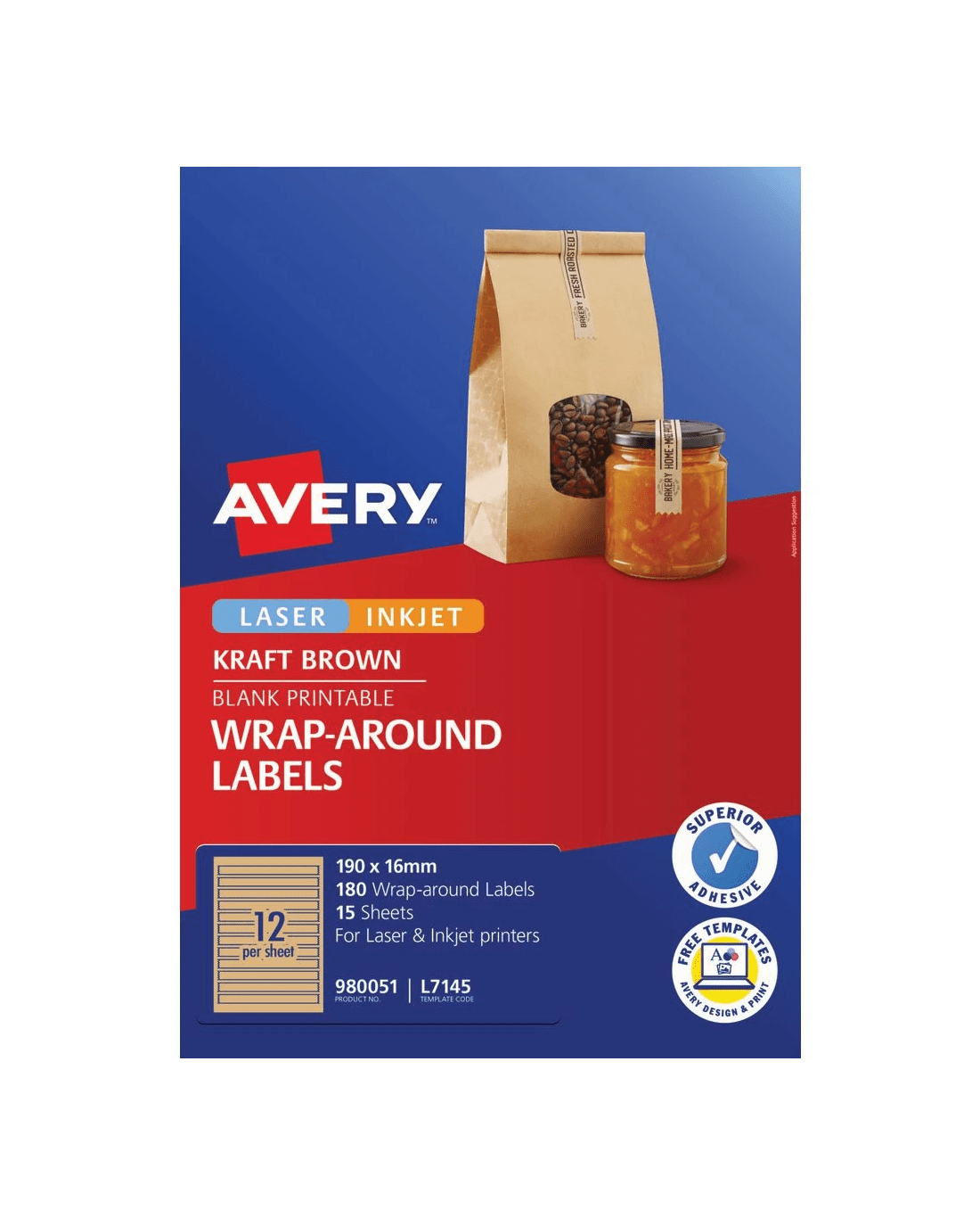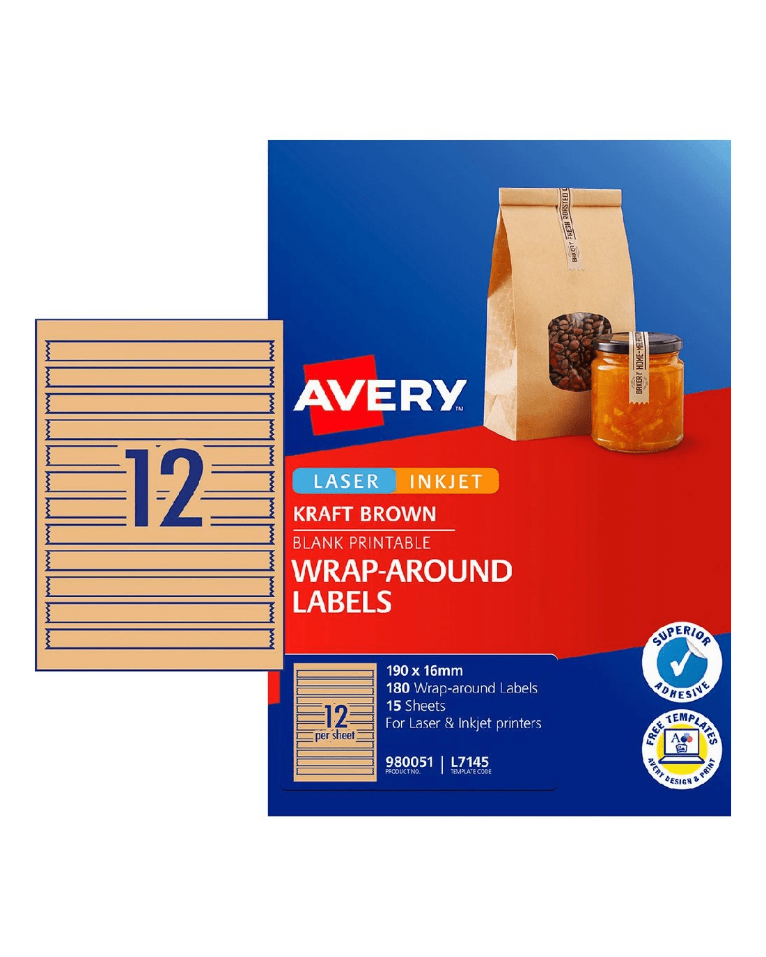 Avery 12UP Inkjet Laser Wraparound Label Kraft 15 Sheets
