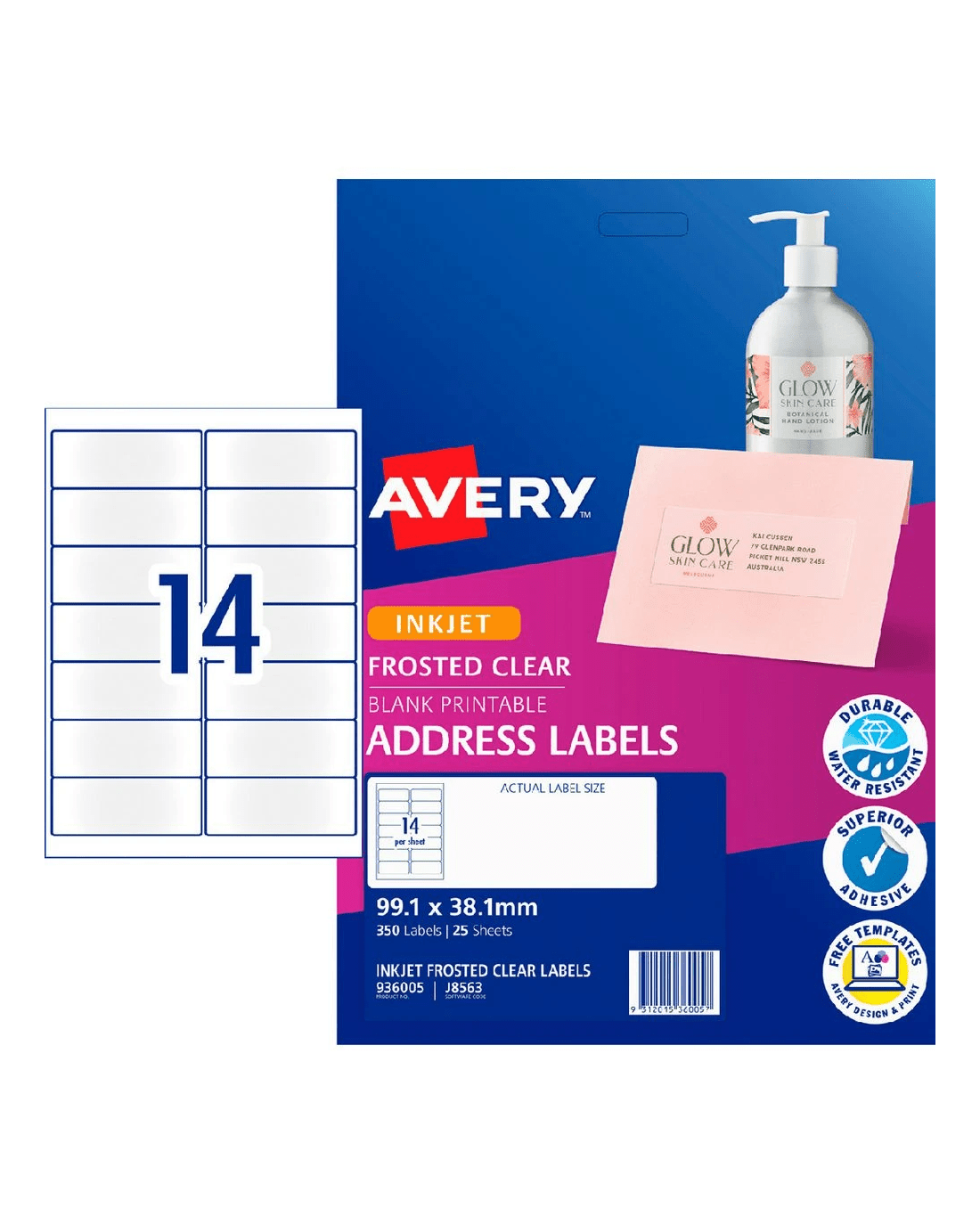 Sold by OfficeworksAvery 14UP Inkjet Mailing Labels Clear 25 Sheets