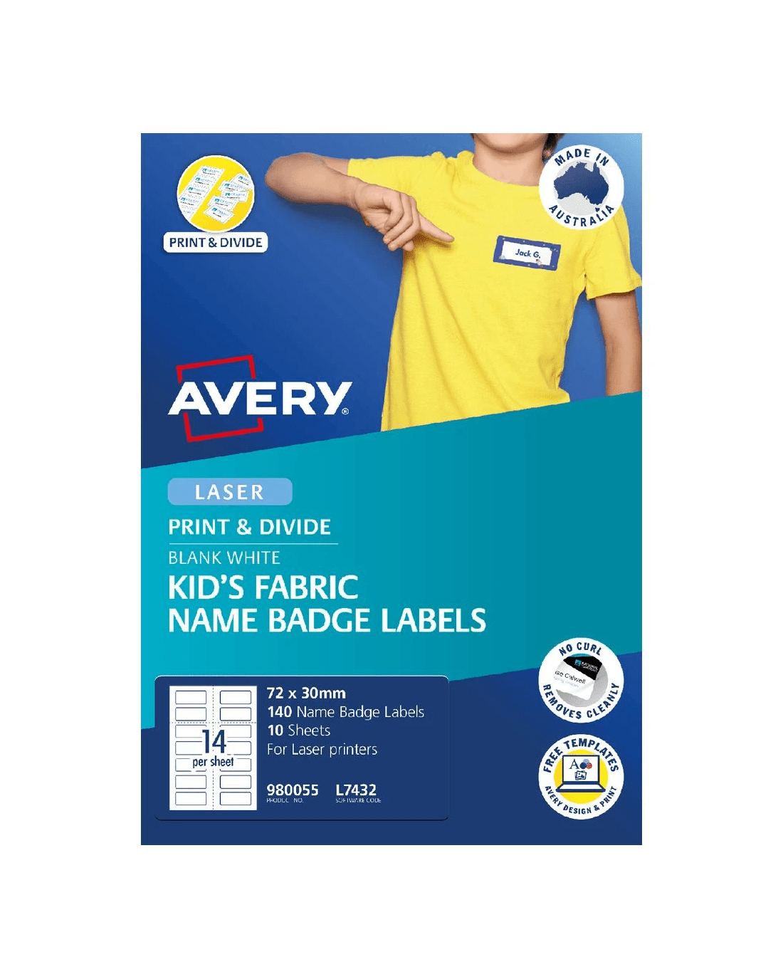 Sold by OfficeworksAvery 14UP Kids Fabric Name Badge Labels White 10 Sheets