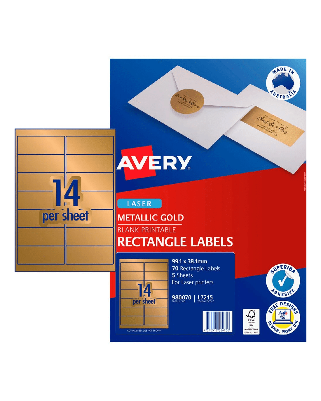 Sold by OfficeworksAvery 14UP Laser Labels Gold 5 Sheets