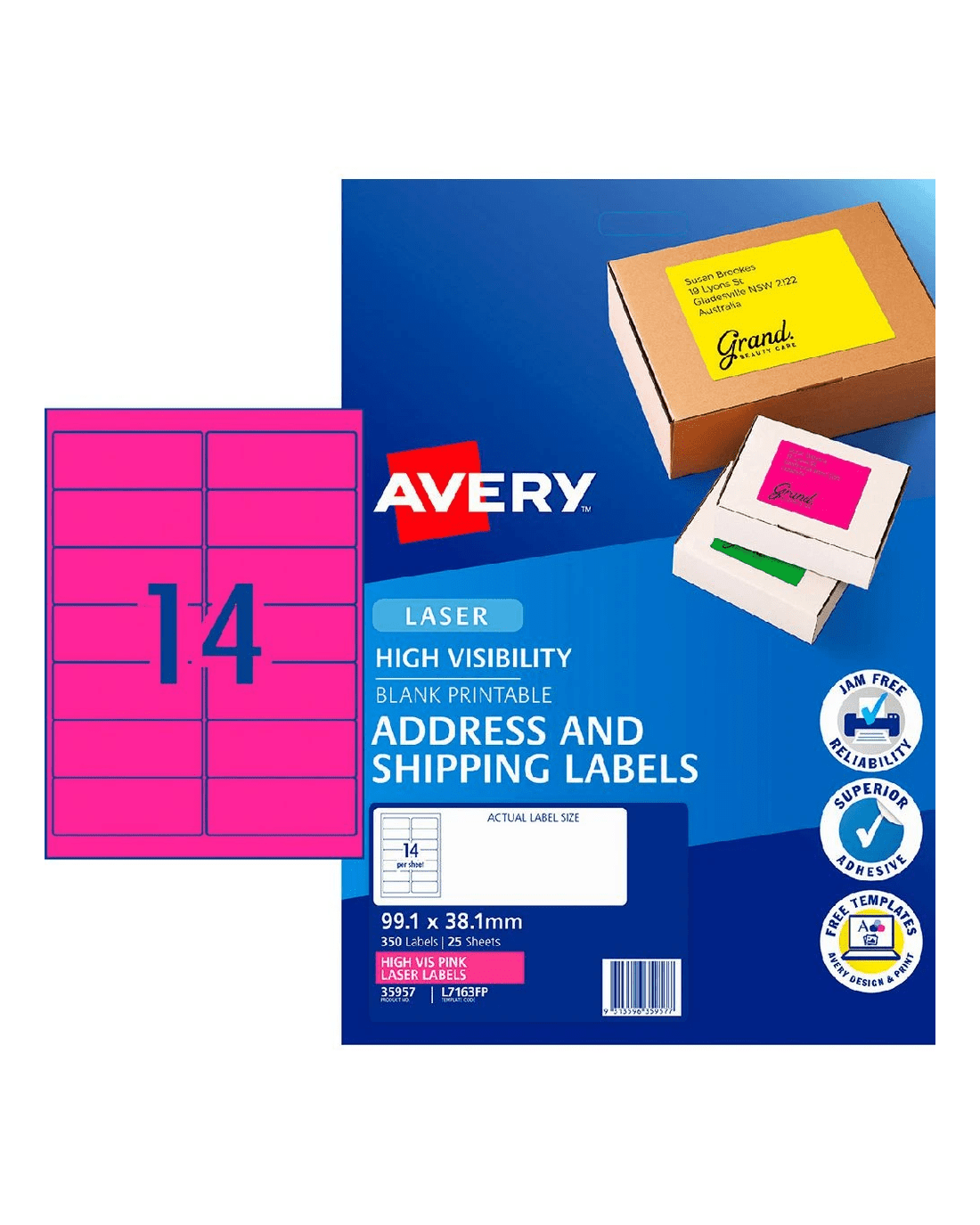 Sold by OfficeworksAvery 14UP Laser Signalling Labels Fluoro Pink 25 Sheets