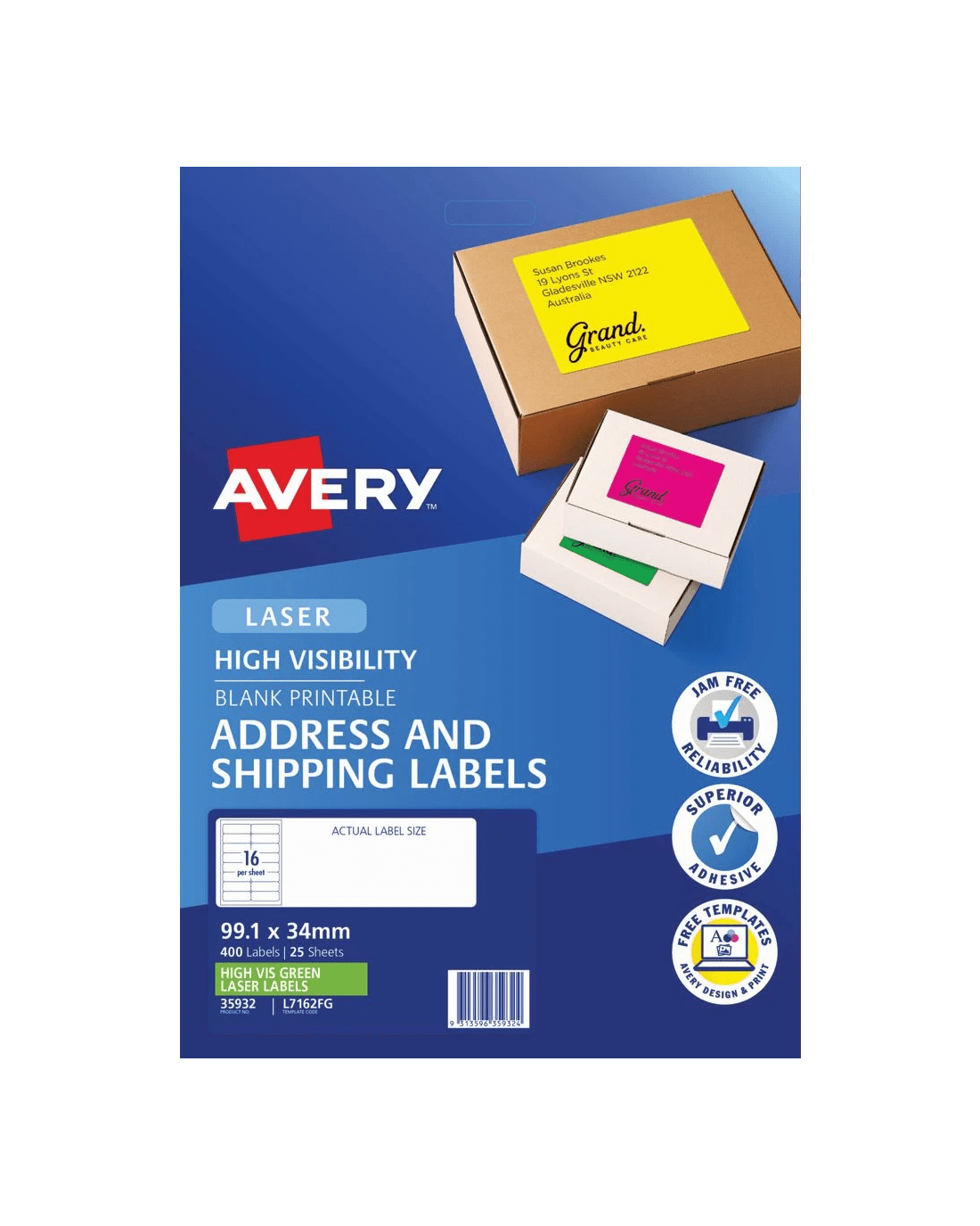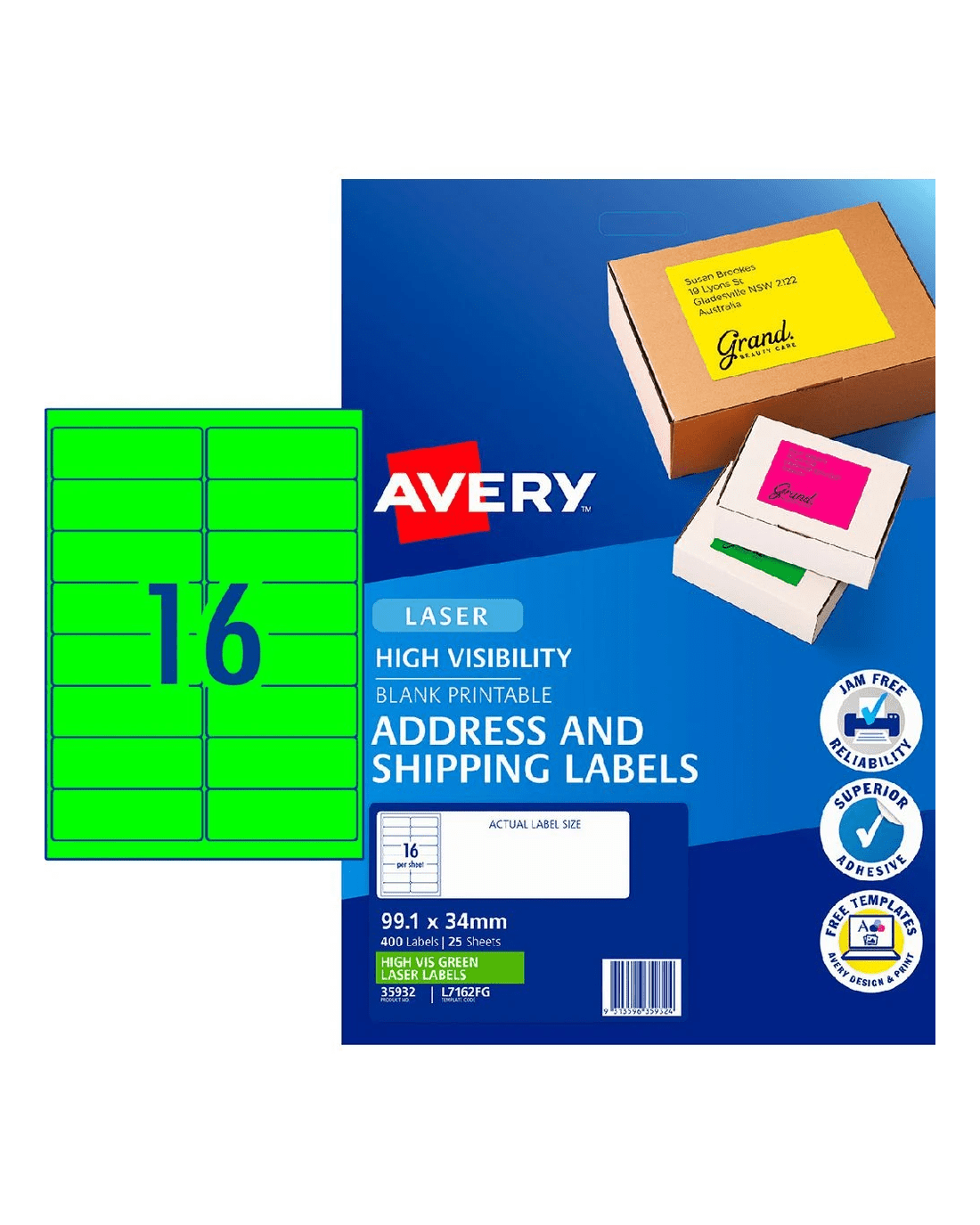 Sold by OfficeworksAvery 16UP Laser Signalling Labels Fluoro Green 25 Sheets