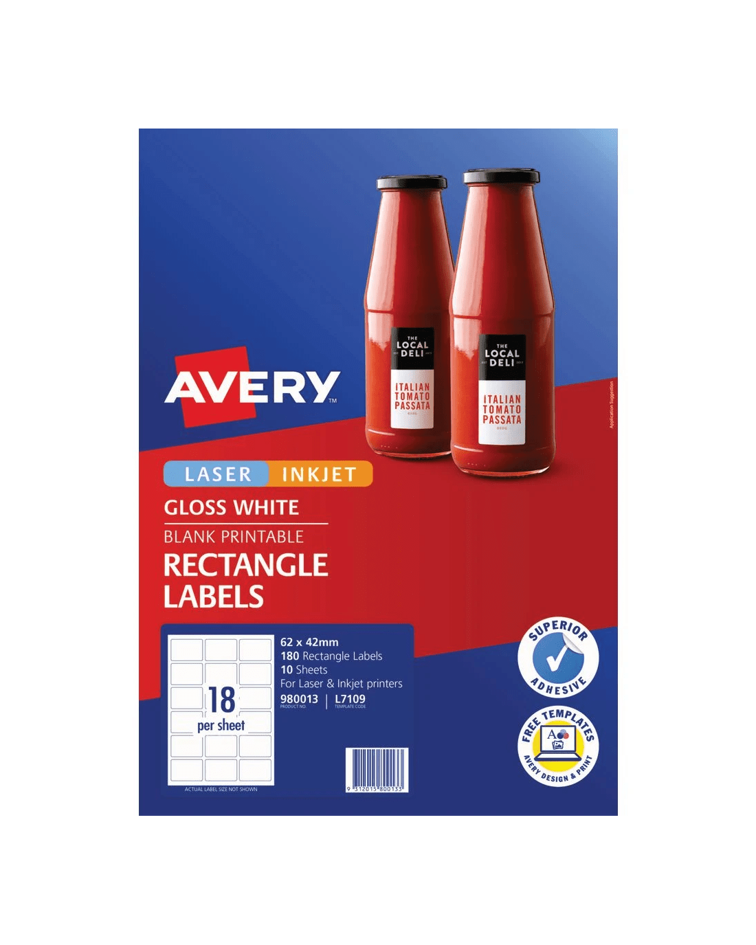 Avery 18UP Inkjet Laser Rectangle Labels Gloss White 10 Sheet
