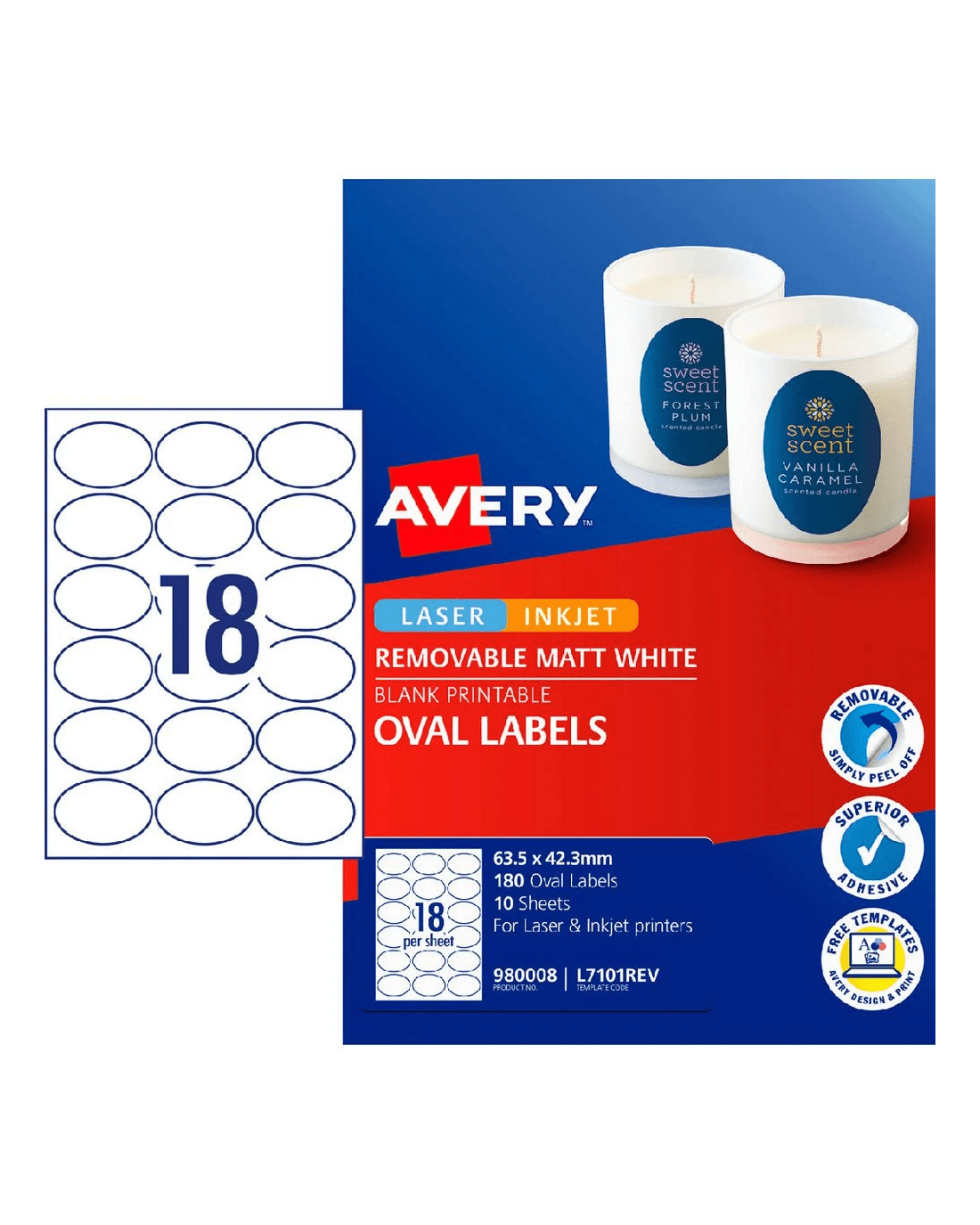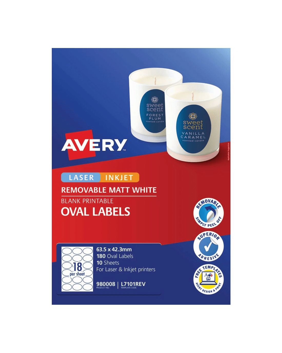 These Avery Print-to-the-edge Labels will let you apply bold colours and sharp text all the way to the edge of your label. These labels are fully removable, and will not leave any residue, which makes them ideal for products and materials that need to be temporarily labelled. The labels come with free templates on the Avery website which makes customising them simple and easy.
