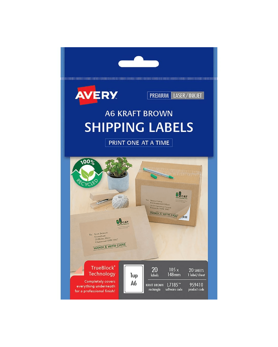 Sold by OfficeworksAvery 1UP A6 Inkjet Laser Shipping Labels Kraft 20 Sheets