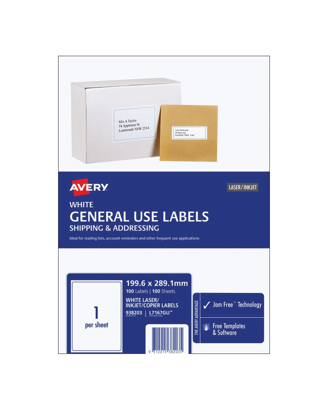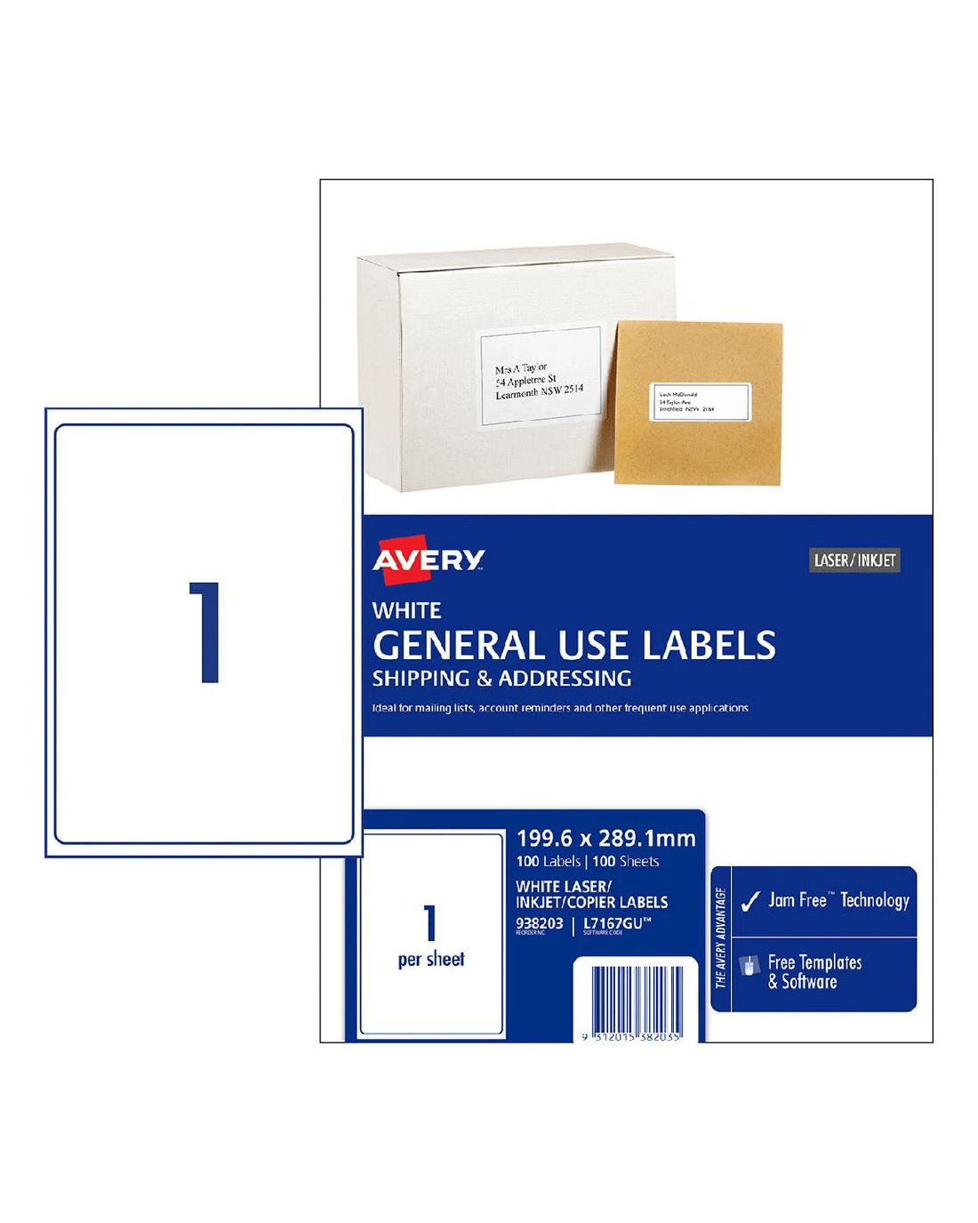 Sold by OfficeworksAvery 1UP Inkjet Laser General Use Labels White 100 Sheets