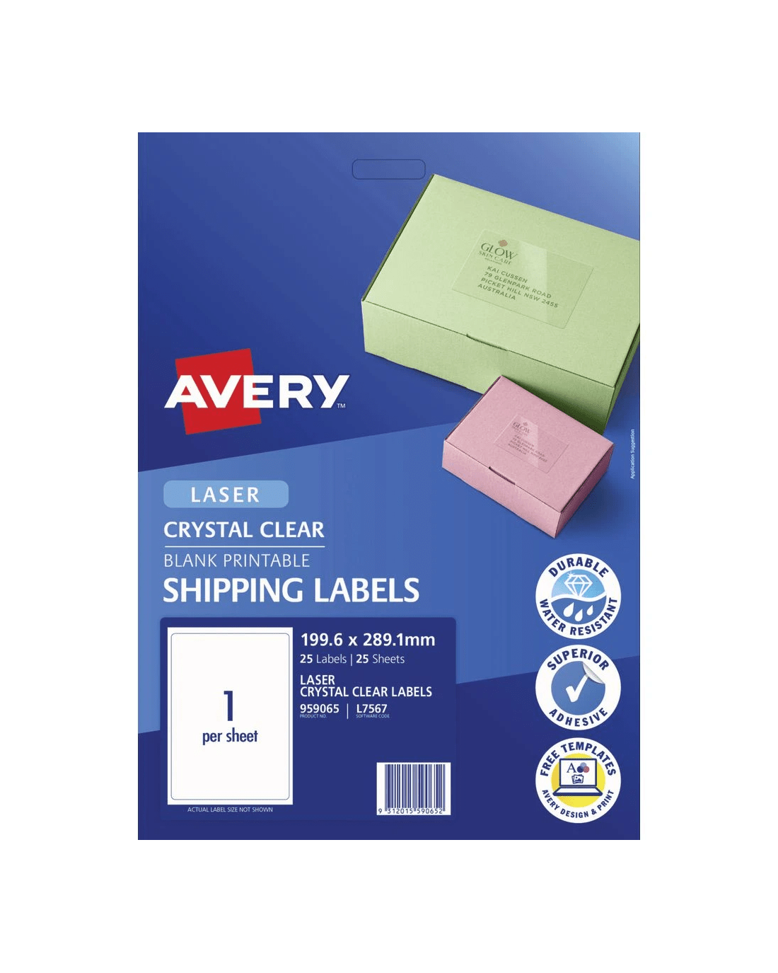 Sold by OfficeworksAvery 1UP Laser Shipping Labels Clear 25 Sheets