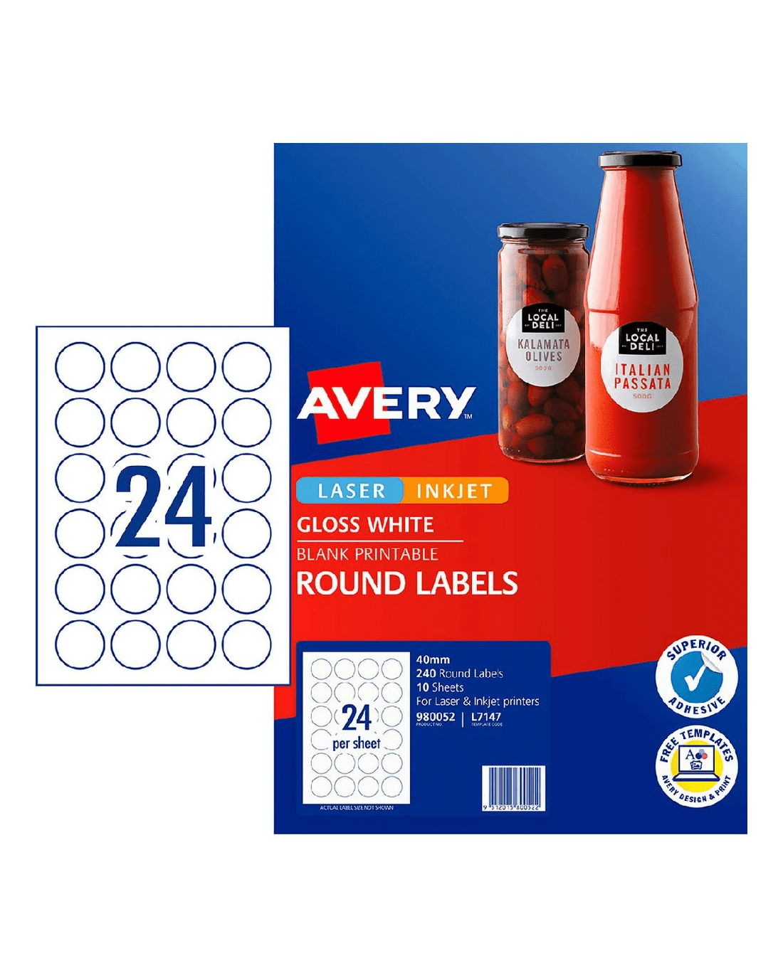 Sold by OfficeworksAvery 24UP Inkjet Laser Round Gloss Label 40mm White 10 Sheet