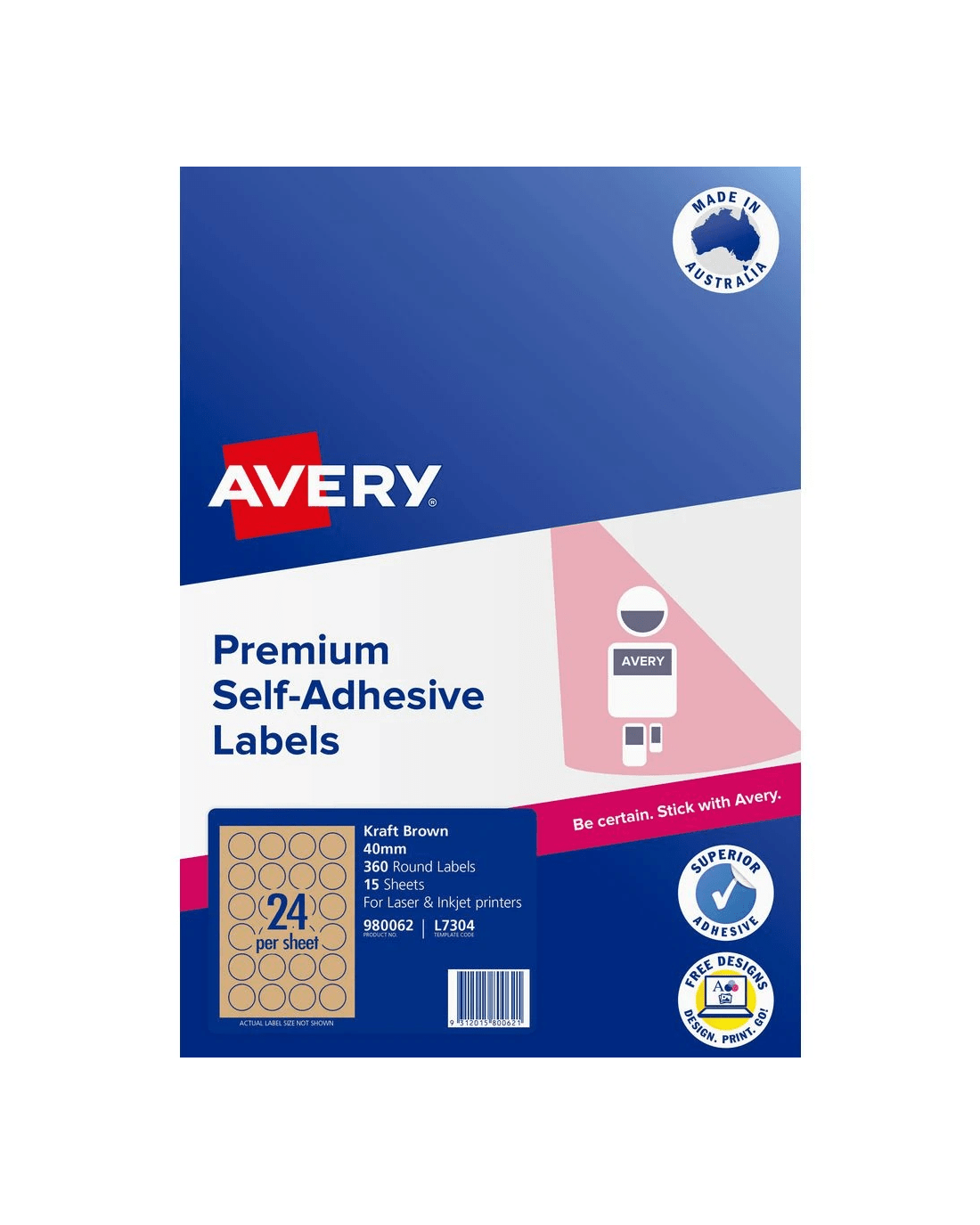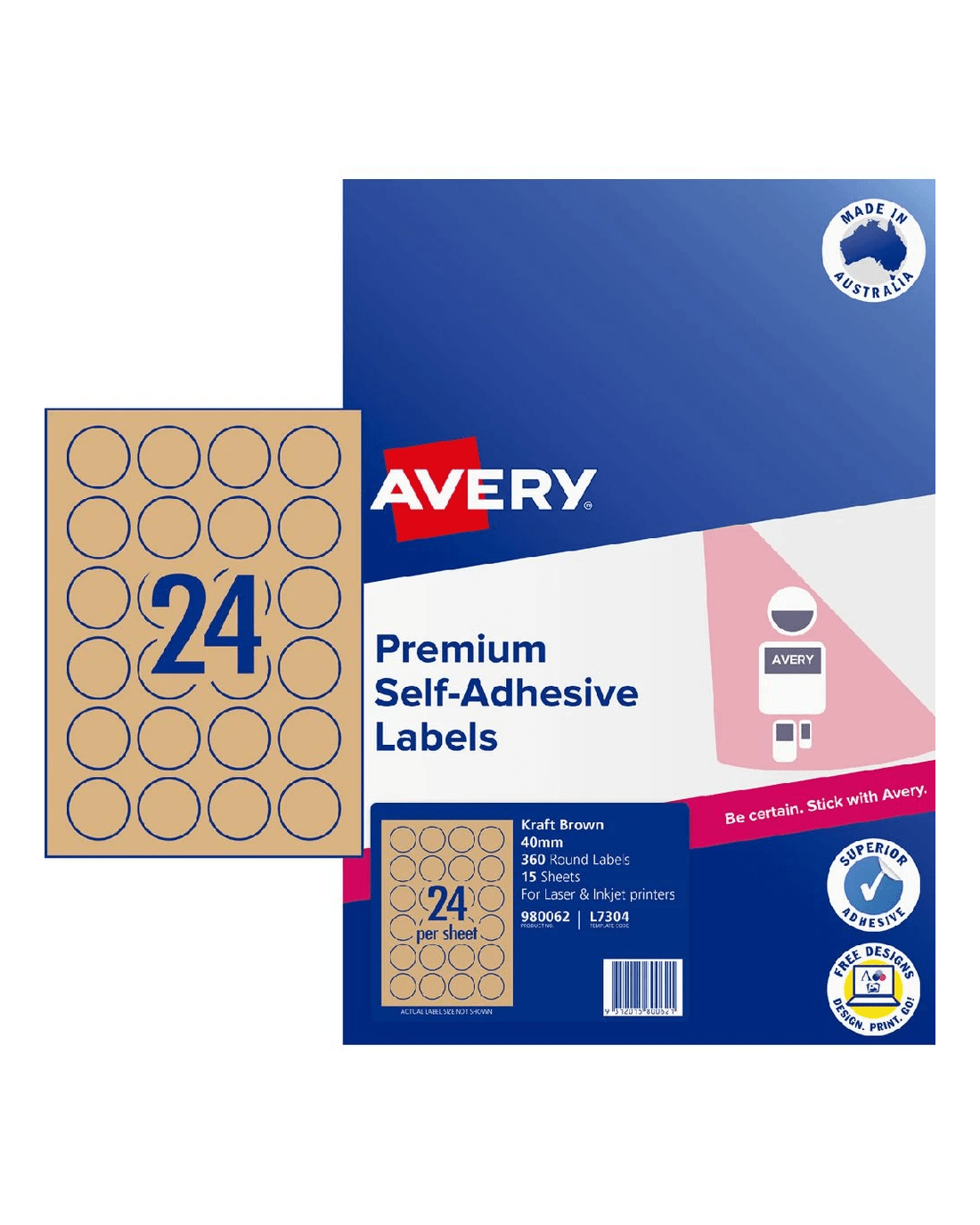 Avery 24UP Inkjet/Laser Kraft Recycled Round Labels 15 Pack