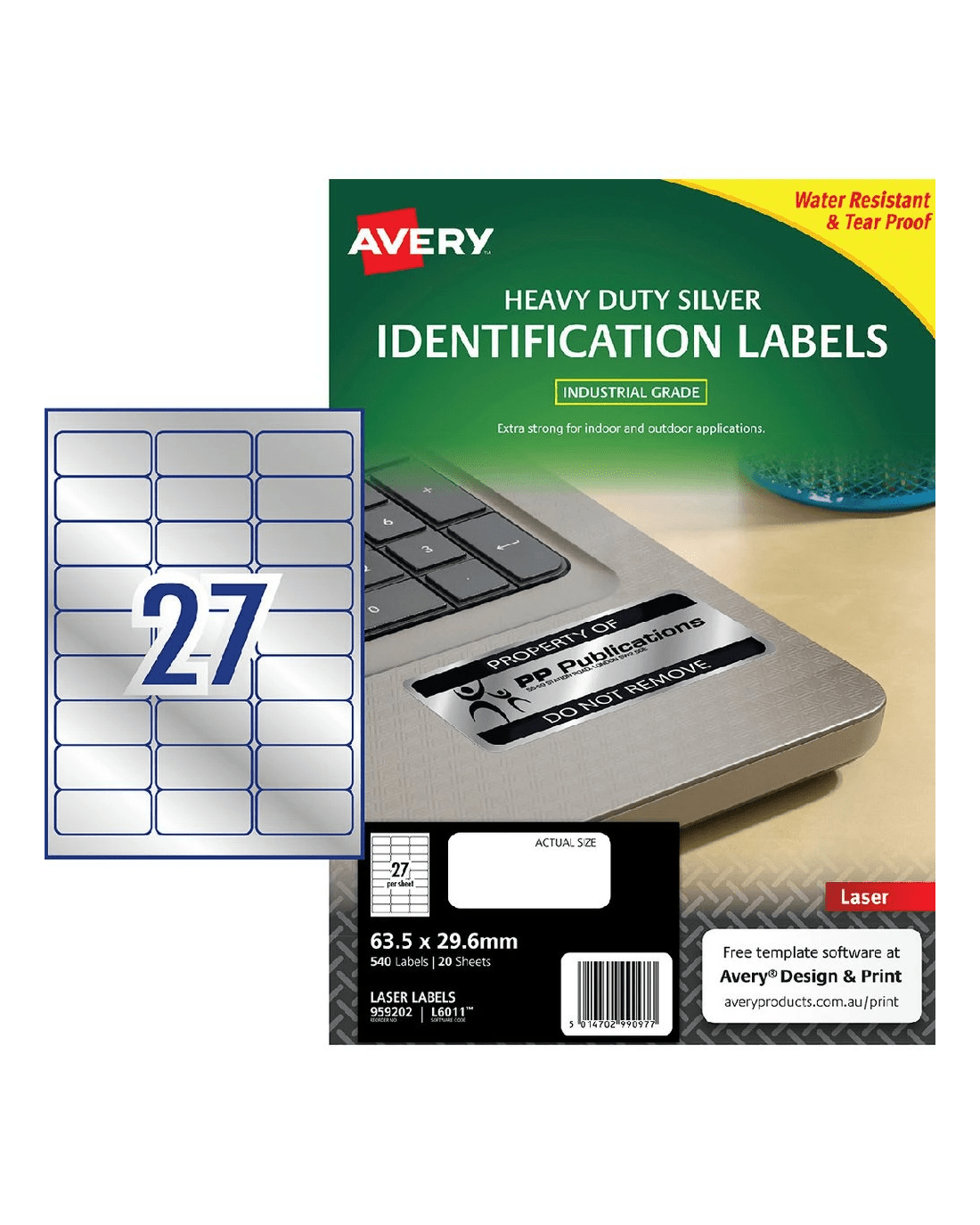 Sold by OfficeworksAvery 27UP Heavy Duty Laser Labels Silver 20 Sheets