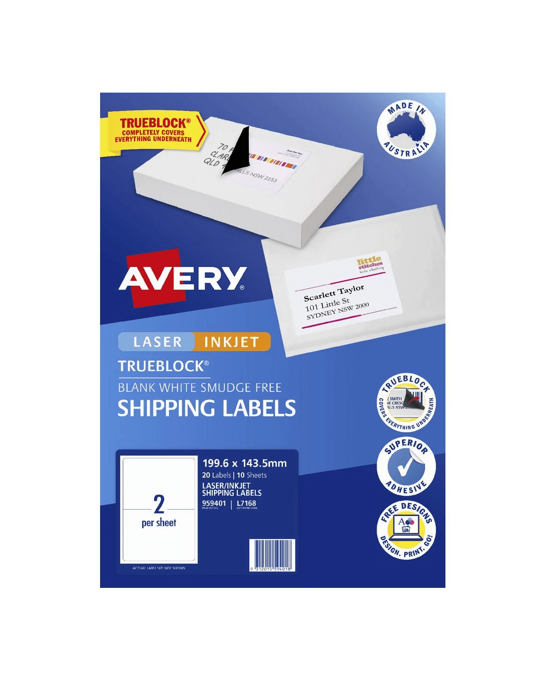 Avery Internet Shipping Labels can be printed on using laser and inkjet printers so you can easily create your own customised address labels. They are made using TrueBlock Technology to be completely opaque and cover anything underneath.