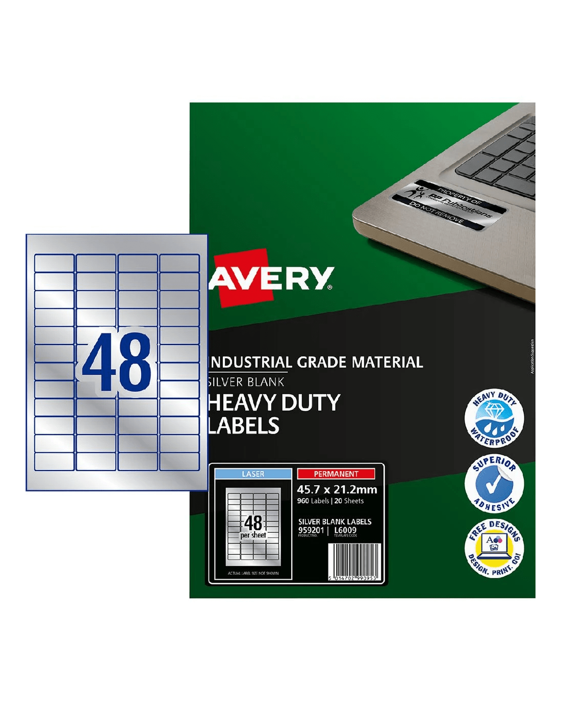 Sold by OfficeworksAvery 48UP Laser Heavy Duty ID Labels 20 Sheets Silver