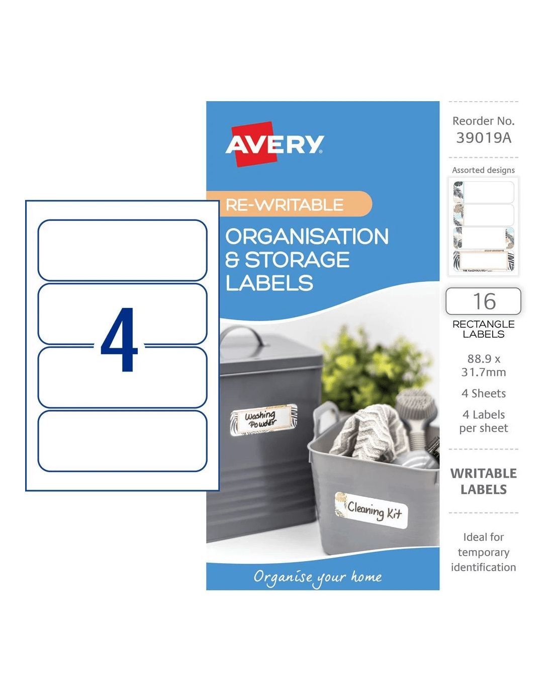 These Avery Dry Erase Organisation & Storage Labels are made from dry erase material, so you can write, erase and write again, making them perfect for temporary or permanent identification. Ideal for storage bins, food containers, toy bins, or storage containers with content that change frequently, these reliable labels won't fray or fall off over time, giving you organisation that lasts while adding a sophisticated look to your storage.