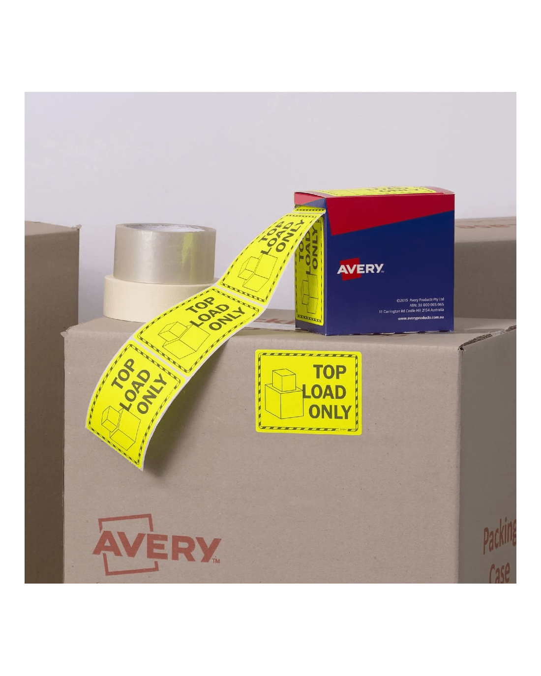 Avery Top Load Only Labels are suitable for use in warehouses to clearly label which items need to be handled with care. The labels are printed with black text on a fluoro yellow background to ensure they are eye catching.