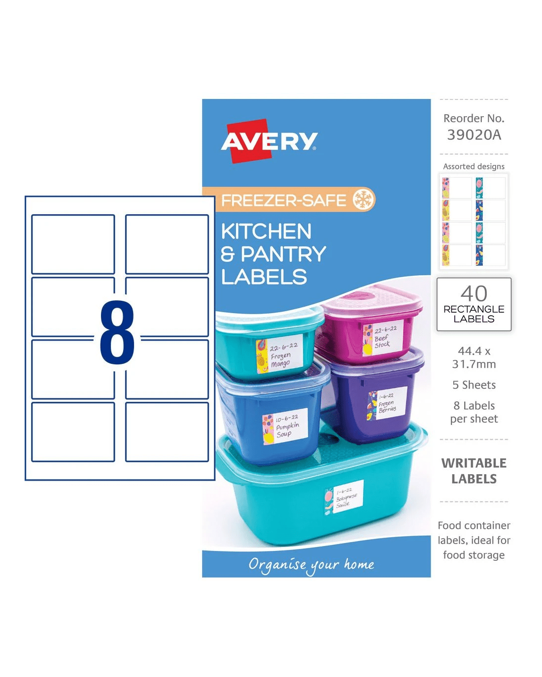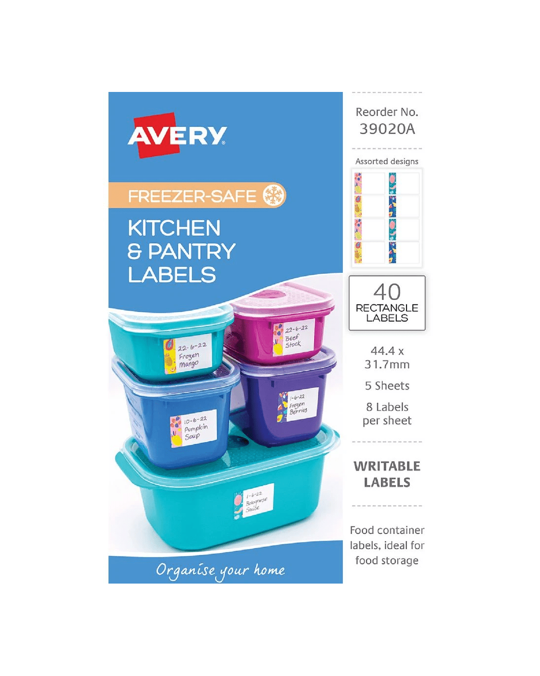 Avery 8UP Freezer-Safe Kitchen & Pantry Labels Blue 5 Sheets