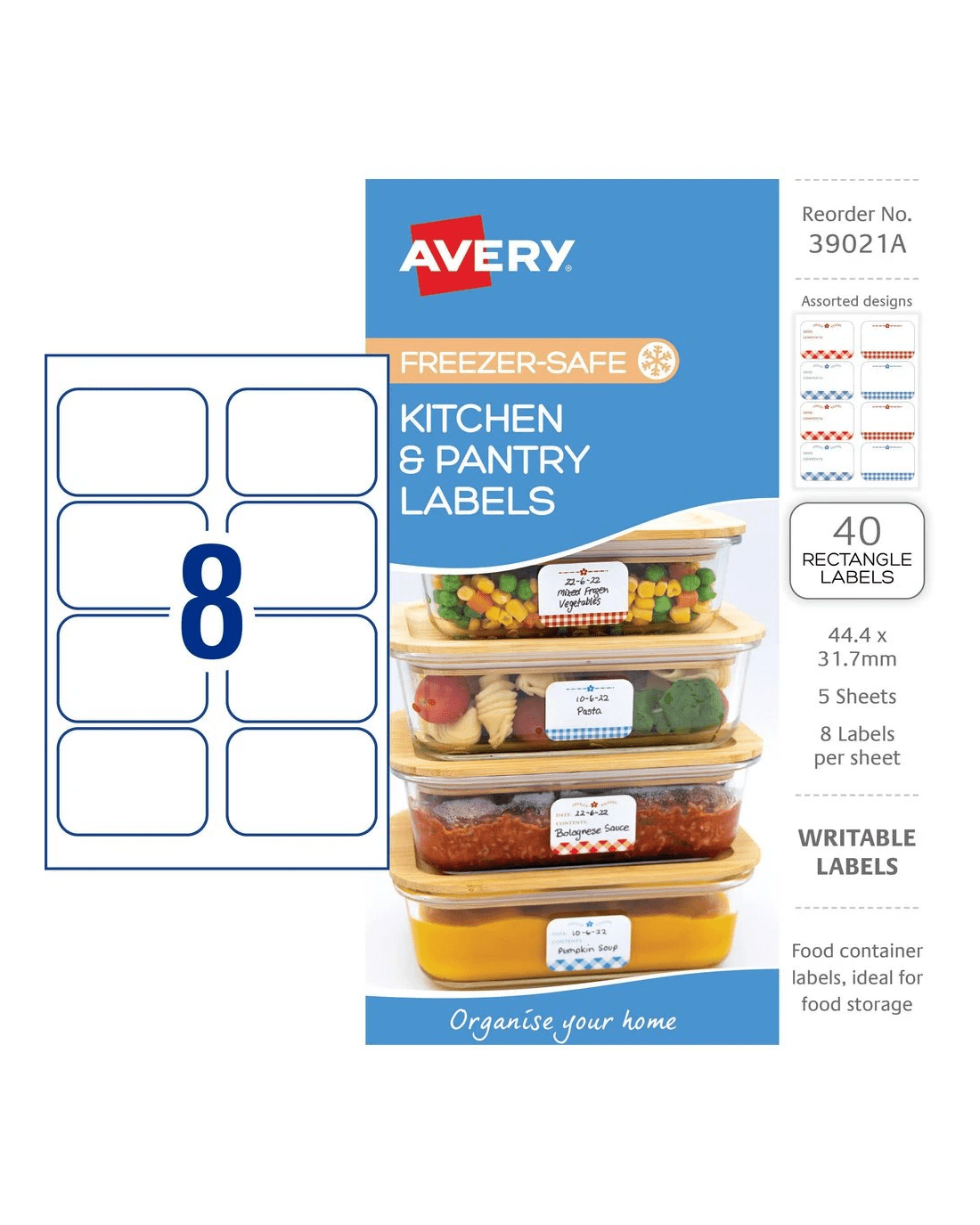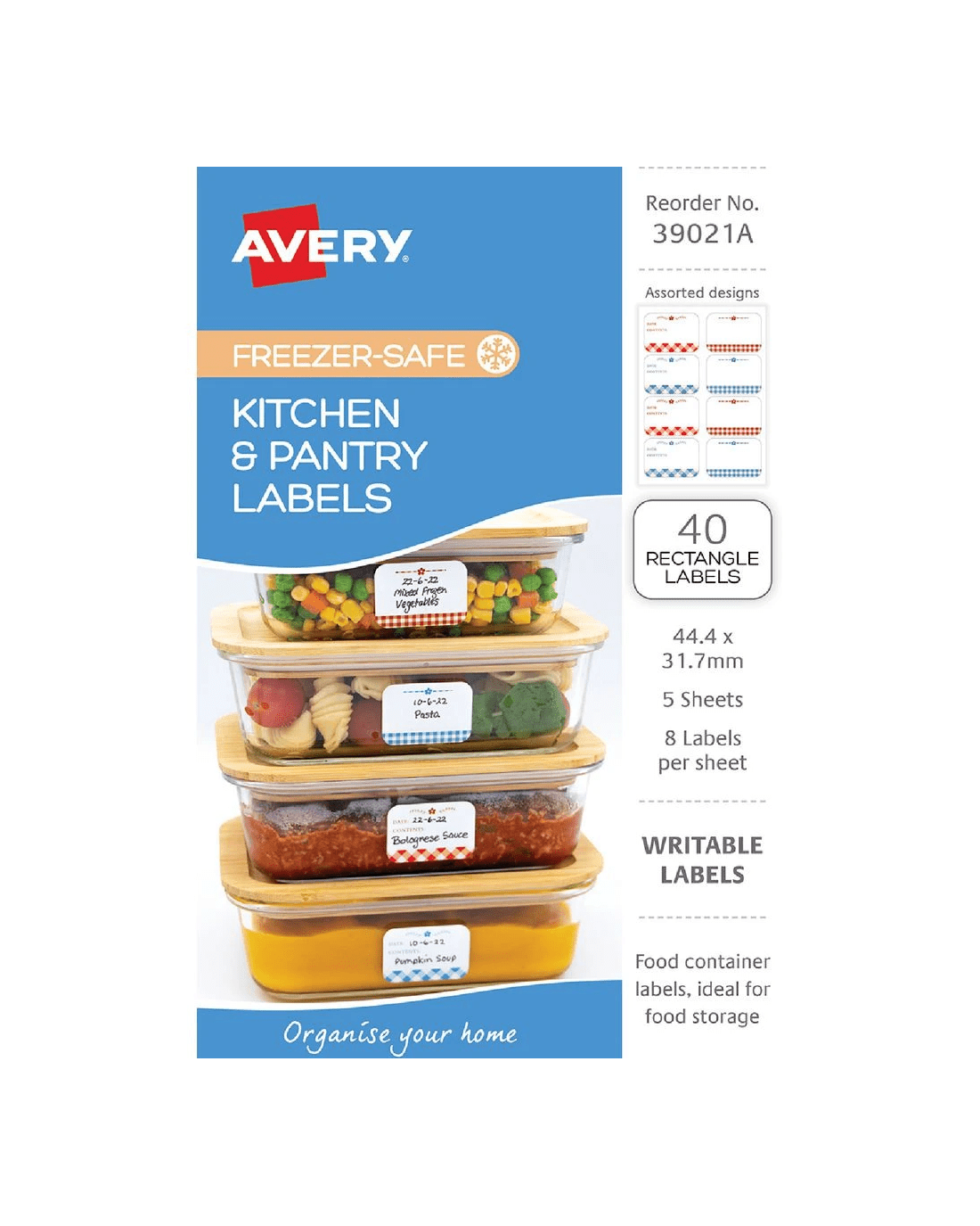 Sold by OfficeworksAvery 8UP Freezer-Safe Kitchen Labels Gingham 5 Sheets