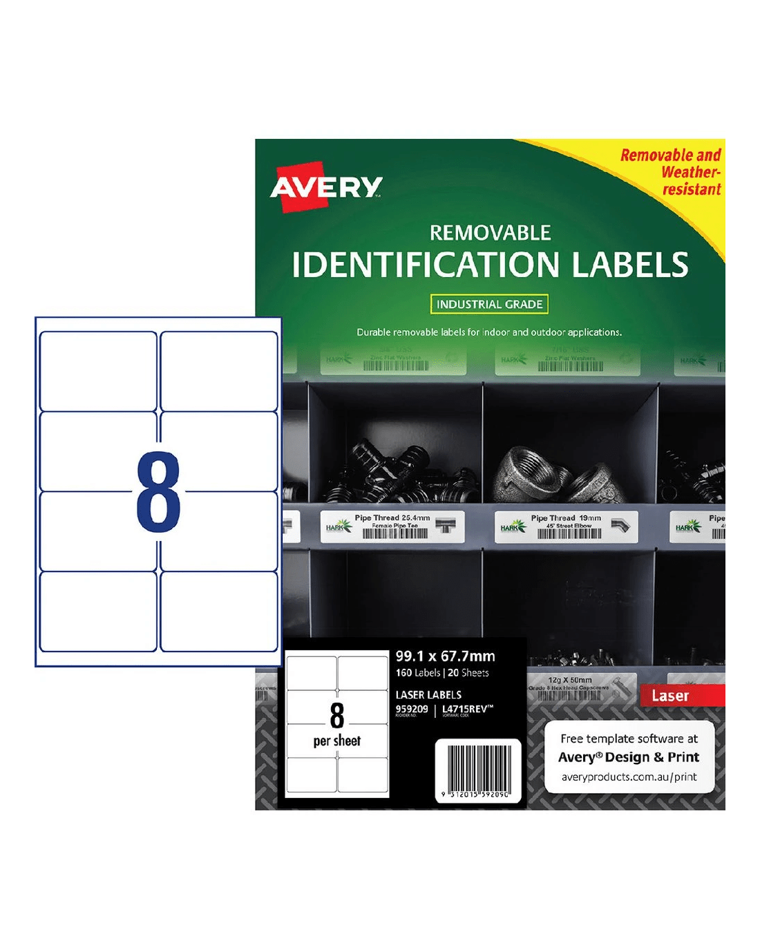 Sold by OfficeworksAvery 8UP Heavy Duty Removable Laser Labels White 20 Sheets