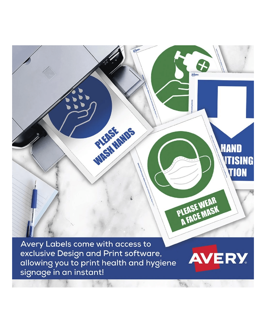 - There are specially designed templates for social distancing and hygiene messages on Avery's website to help you set up safety messaging quickly and easily.