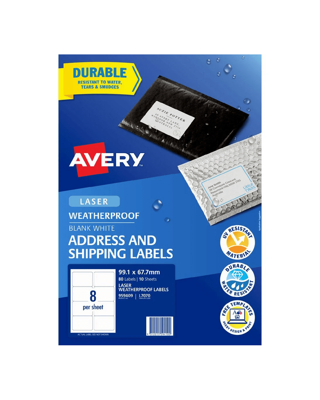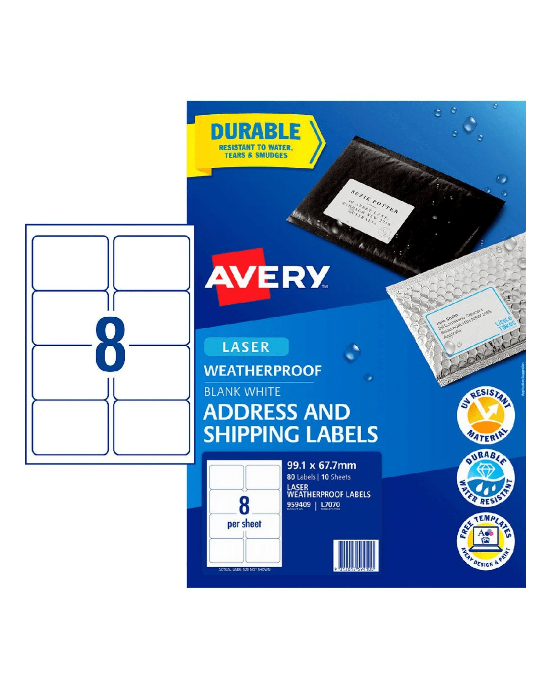 Sold by OfficeworksAvery 8UP Laser Weatherproof Shipping Labels White 10 Sheets