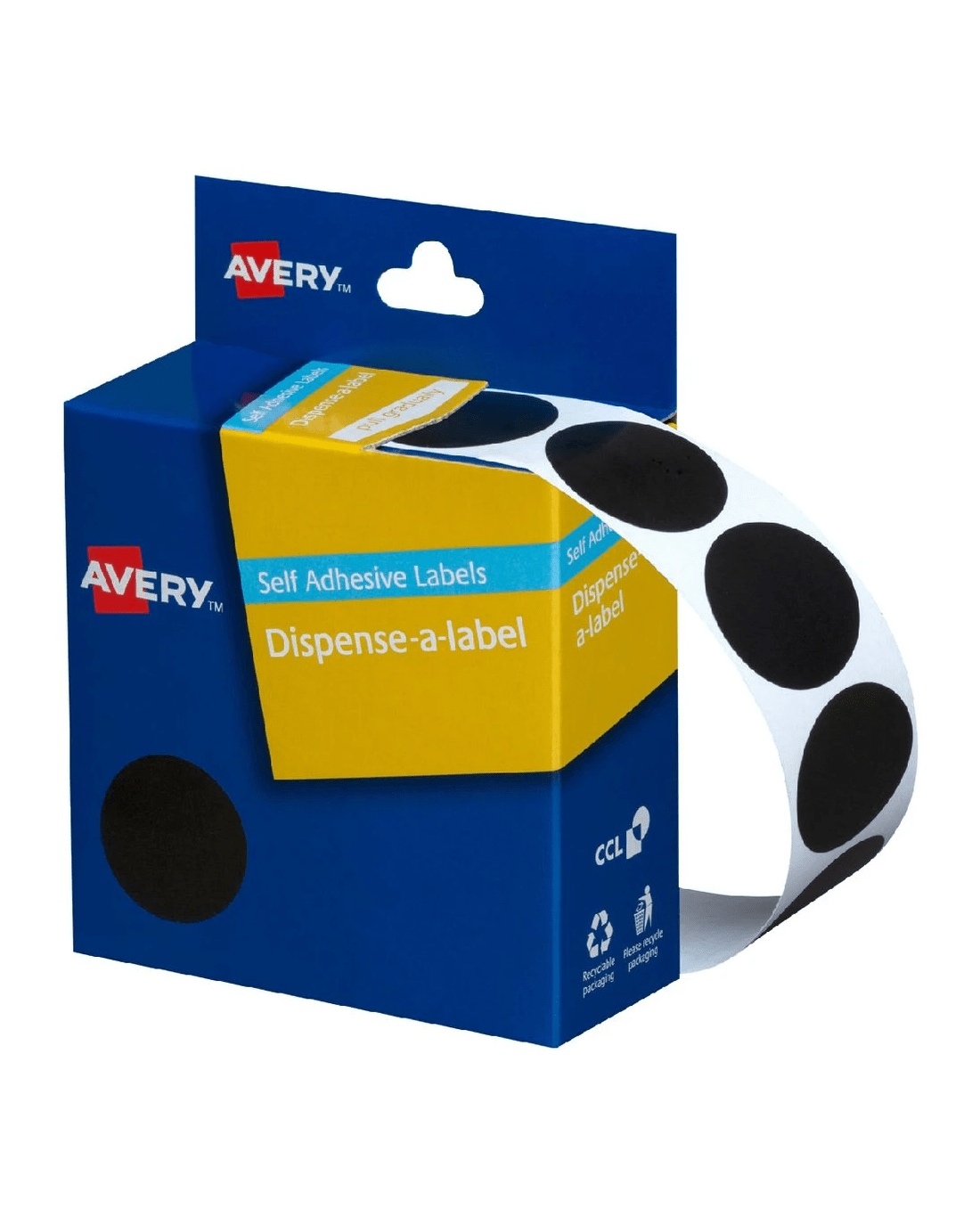 Quickly and easily label your files with this set of circular black Avery Dispenser Labels. These labels come packaged in a handy dispenser pack which lets you organise your files with ease. These general purpose labels are perfect for routine tasks where speed is important.