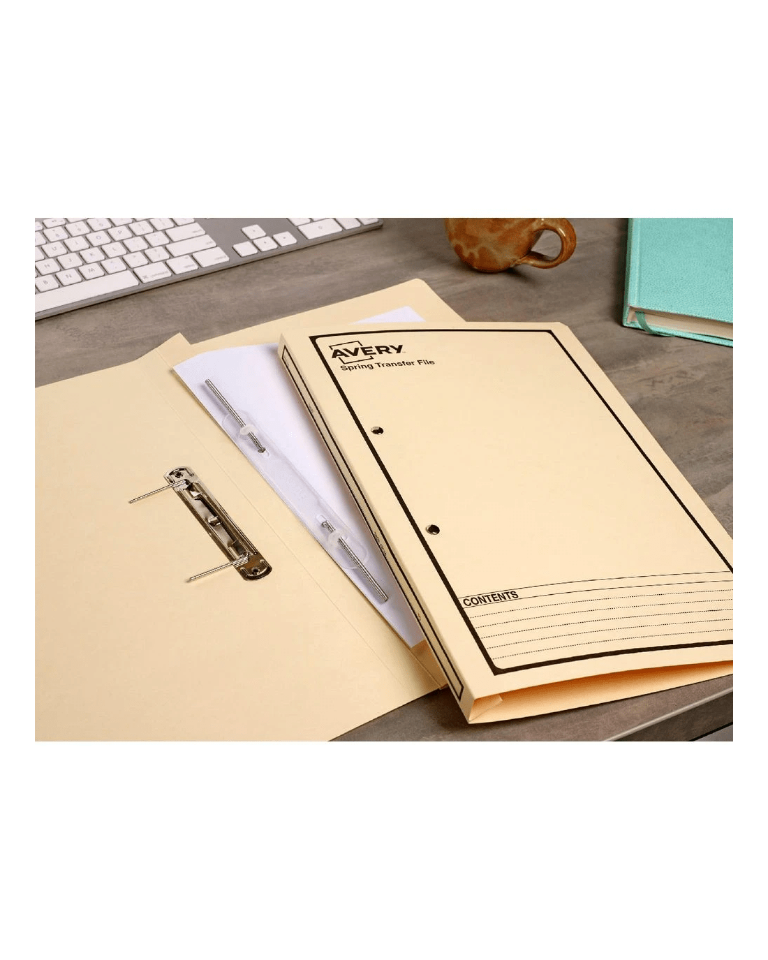 This Avery Foolscap Spiral Spring File is ideal for keeping all of your loose and unpunched papers together. This file is made from extra heavy duty manilla cardboard, and comes fitted with a spiral spring coil fastener and pressure plate.