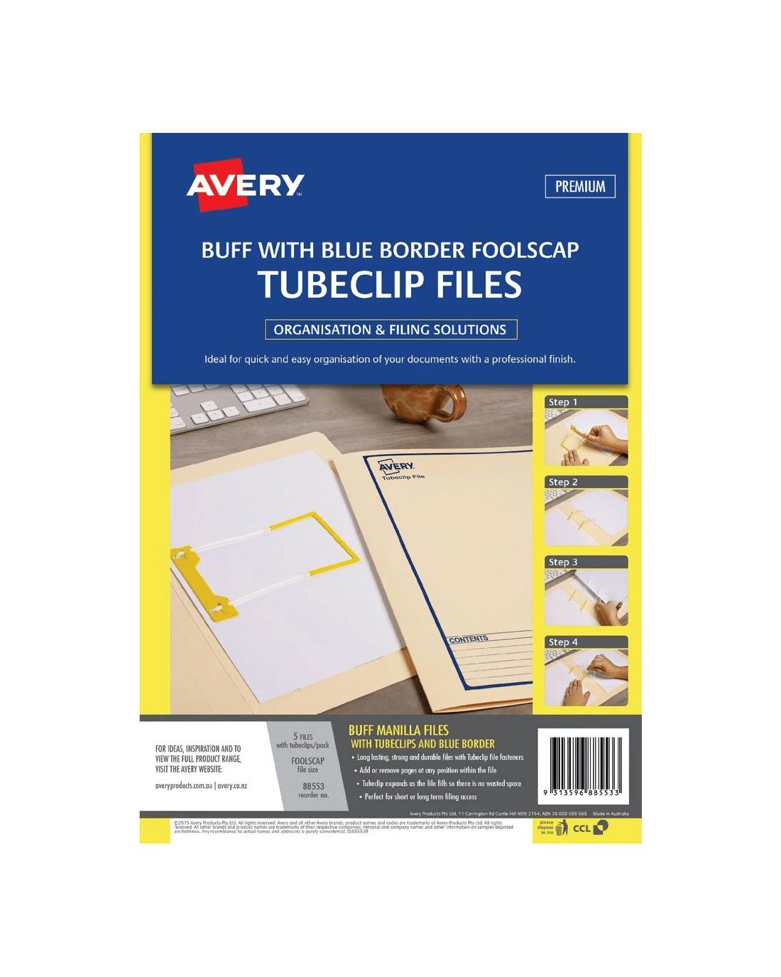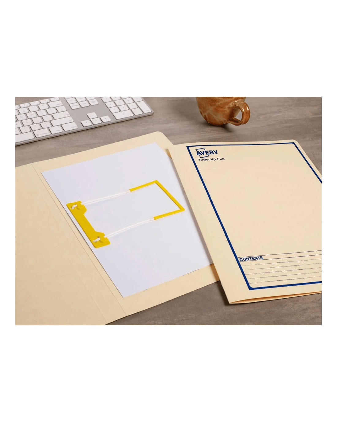 Avery Foolscap Tubeclip Files Buff with Navy Border 5 Pack