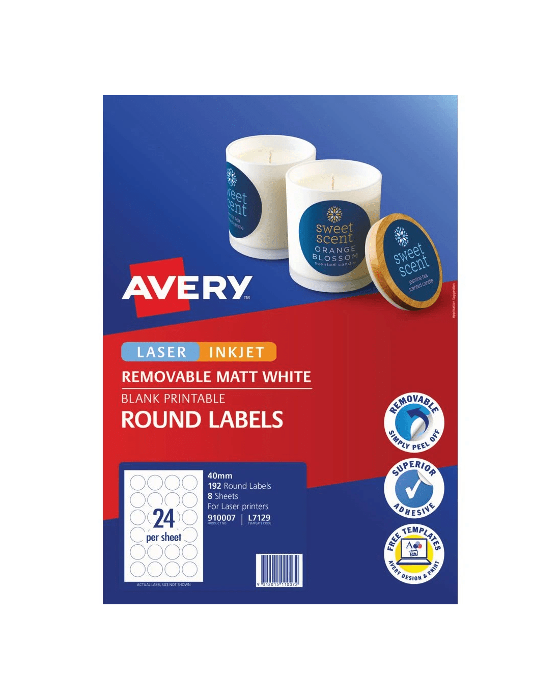 Create eye-catching customised product labels with these Avery Matte Round Pricing Labels where you can display prices, logos and product information. These removable adhesive labels have a print-to-the-edge feature which lets you add full colour backgrounds to the labels. Create your own design or customise one of the free Avery Design Online and Print templates to really make your promotions and special offers draw in a crowd.