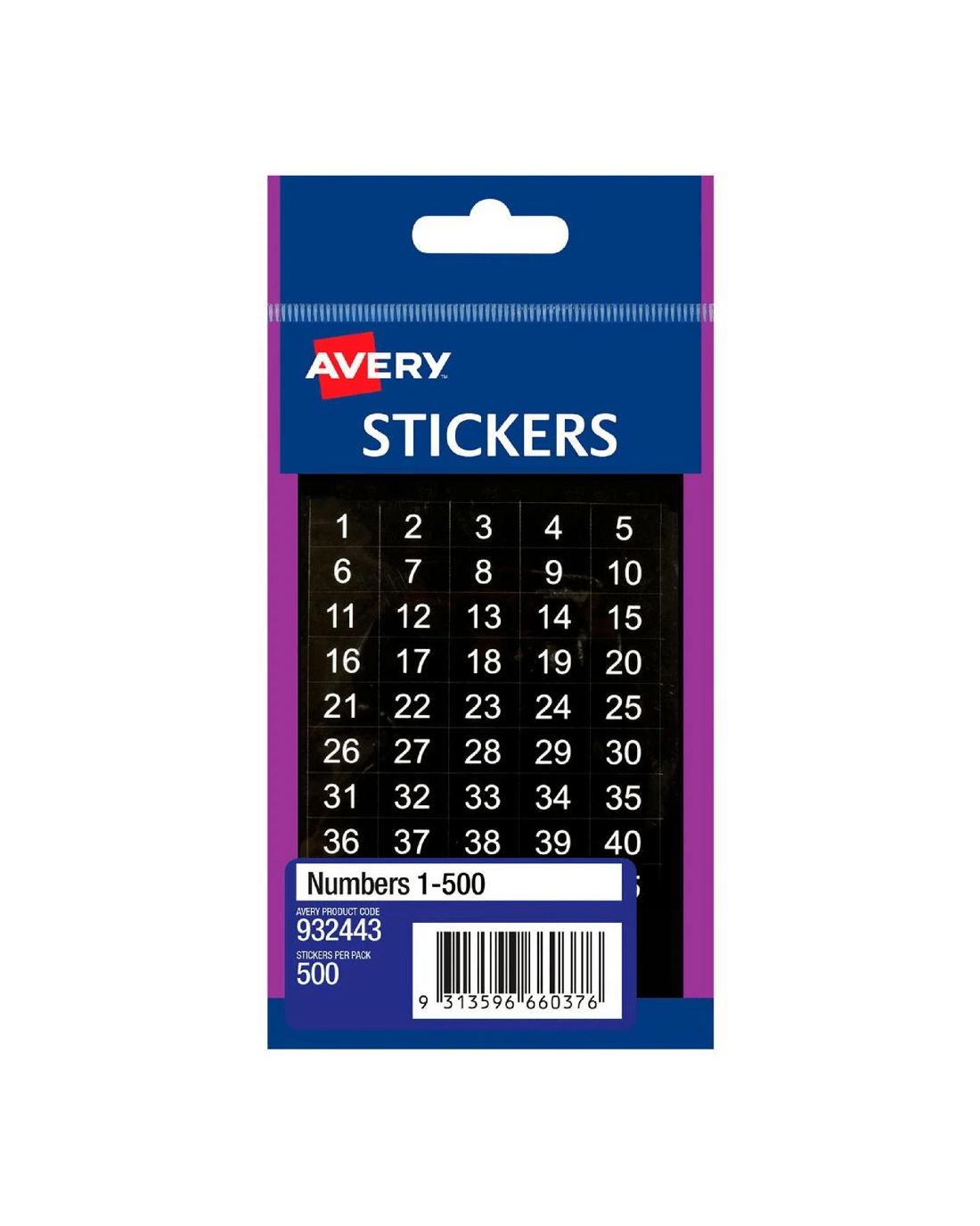Use these Avery Multi-Purpose Stickers 1-500 Pack to number pages, identify documents and to label your household items. The white text on the black background makes them easy to see and identify. These handy pocket sized packs are resealable for your convenience.