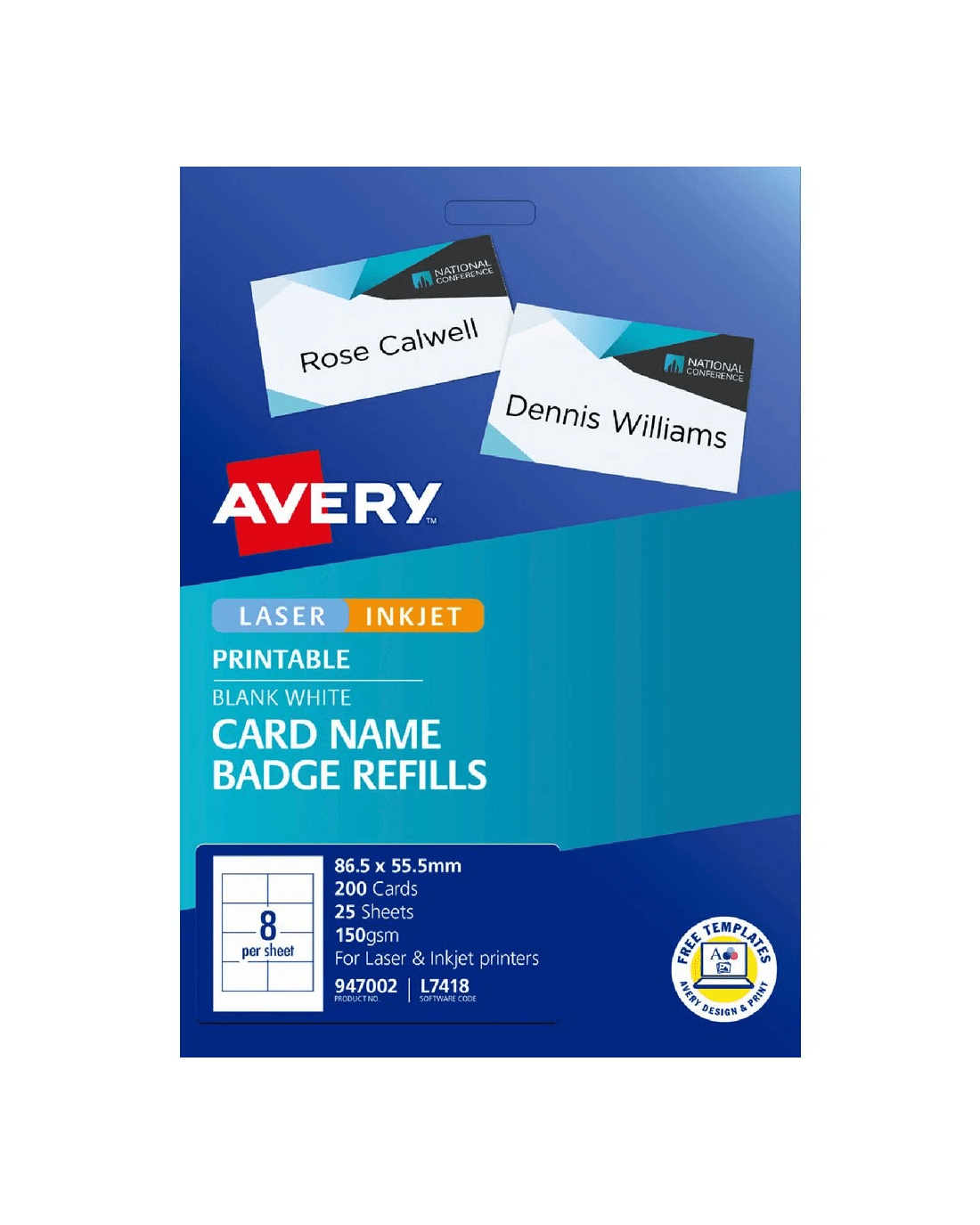 These Avery Name Badge Cards are perfect for using at your next event, function, show, conference or party. You can design your cards using Avery software and print them out on your laser or inkjet printer resulting in a professional finish.