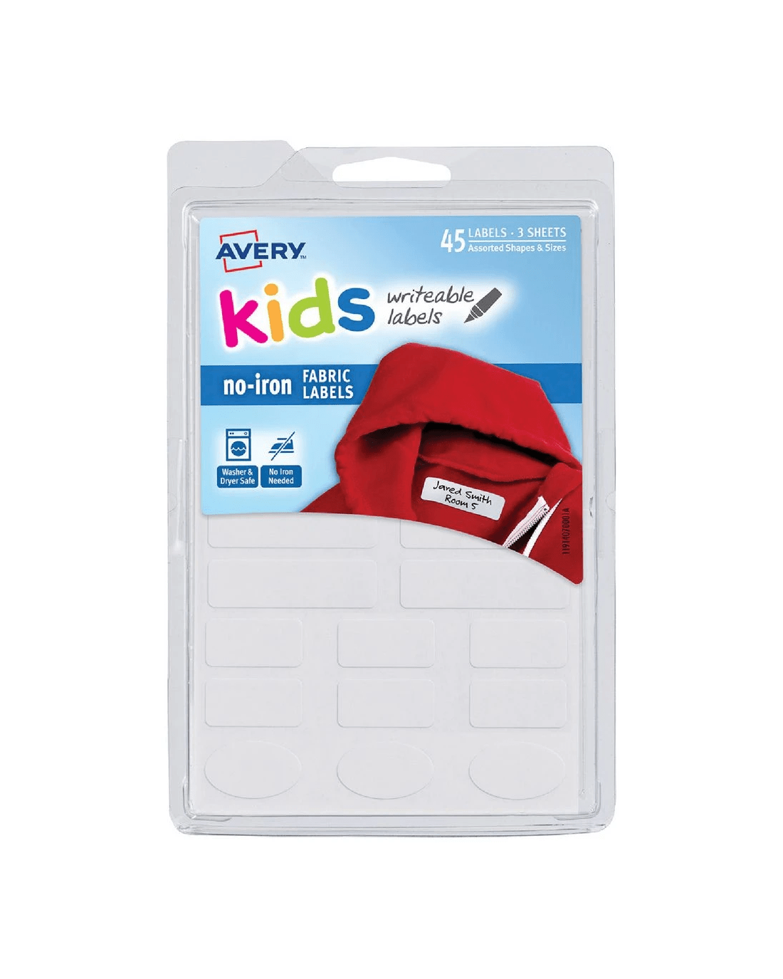 Sold by OfficeworksAvery No-Iron Clothing Labels White Assorted 45 Pack