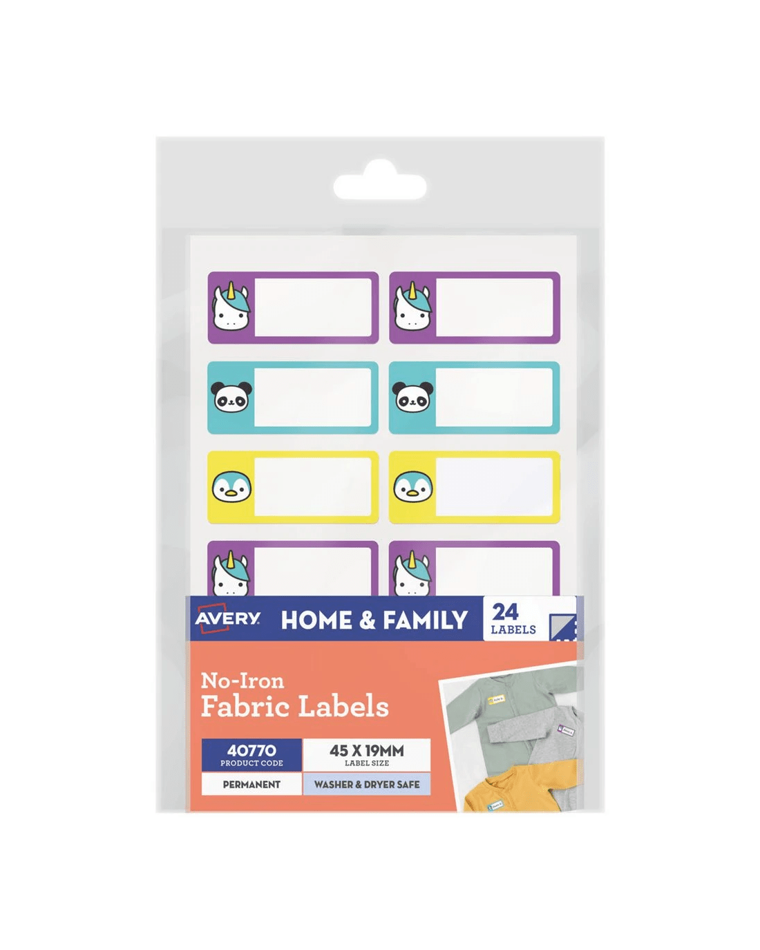 Avery No‑Iron Fabric Labels make it easy to ensure clothing and personal items always find their way back to their owner. Designed for jackets, school uniforms, baby clothes and more, these labels simply require handwriting, peeling and sticking with no ironing needed. Made from durable film material, they are built to withstand multiple wash and dry cycles for long lasting identification.
