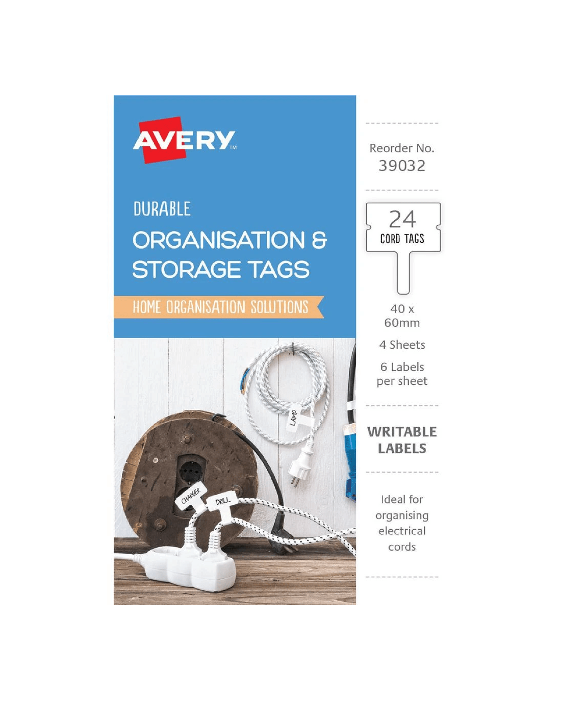 Sold by OfficeworksAvery Organisation and Storage Cord Tags 40 x 60mm 24 Pack