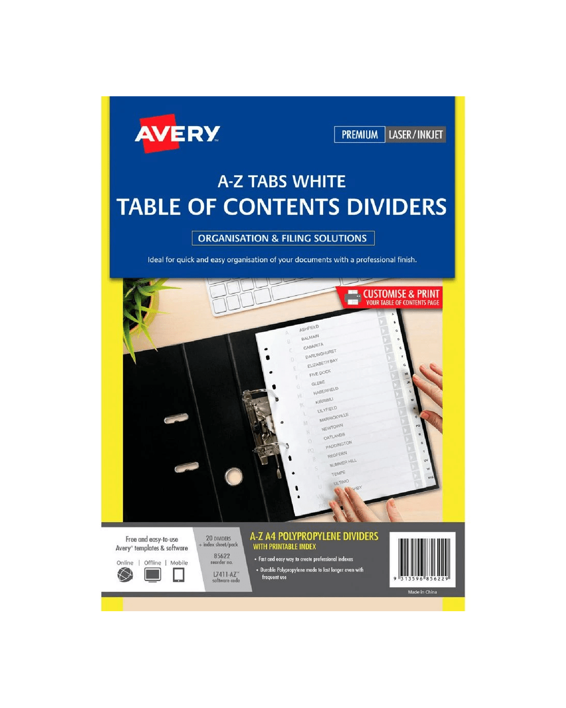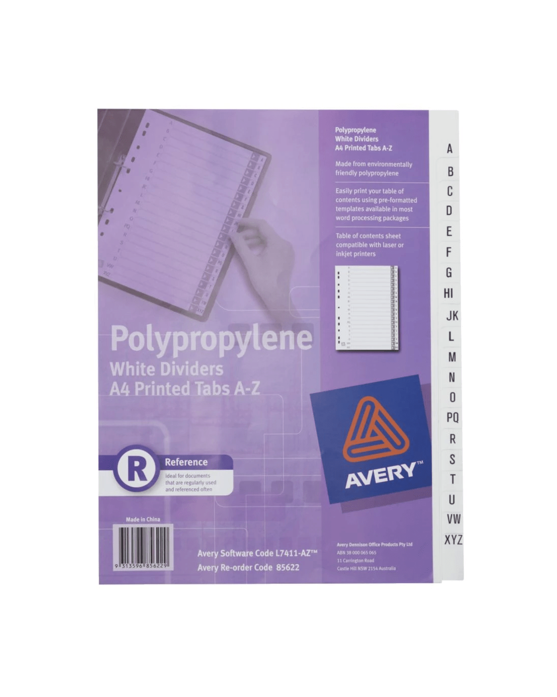These Avery Polypropylene A4 Printed Tabs Dividers will allow you to print your own table of contents, to organise your documents and files. They are made from durable polypropylene so you can be confident that they will last and withstand frequent use. These dividers are printed alphabetically from A to Z.