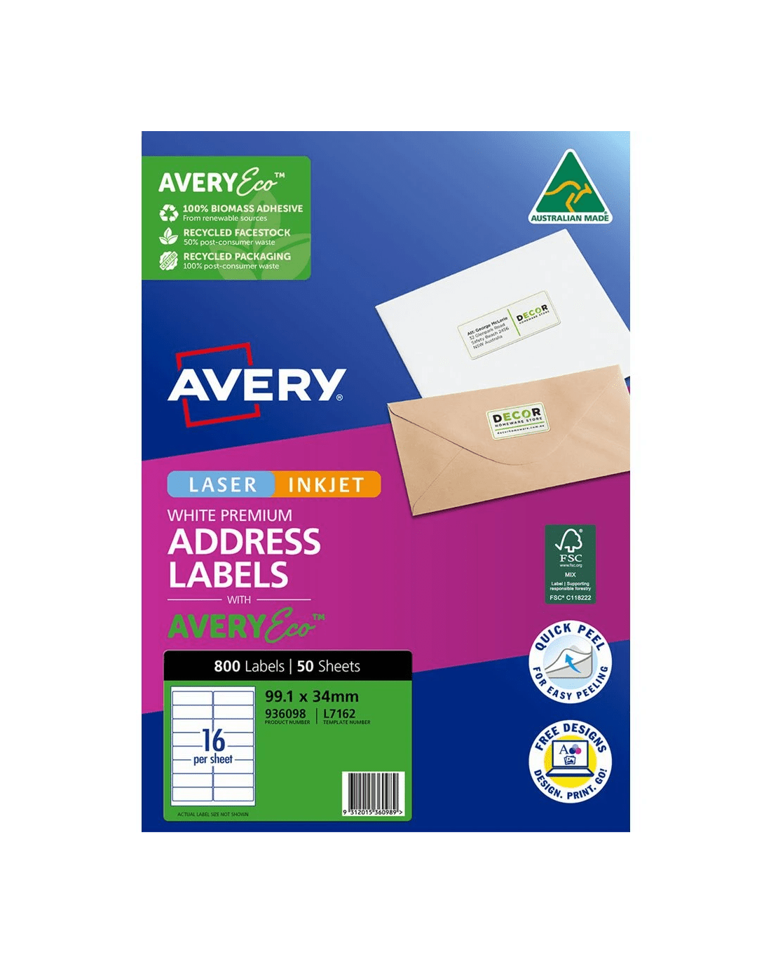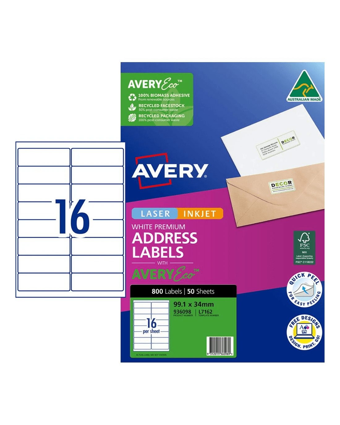 Sold by OfficeworksAvery Premium White Addressing Labels AveryEco 16UP 50 Sheets