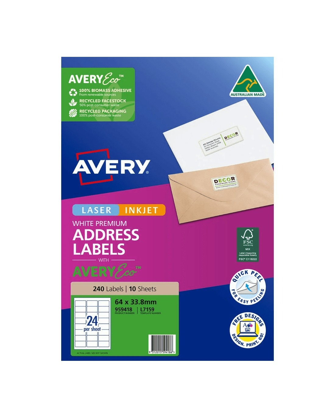 Sold by OfficeworksAvery Premium White Addressing Labels AveryEco 24UP 10 Sheets