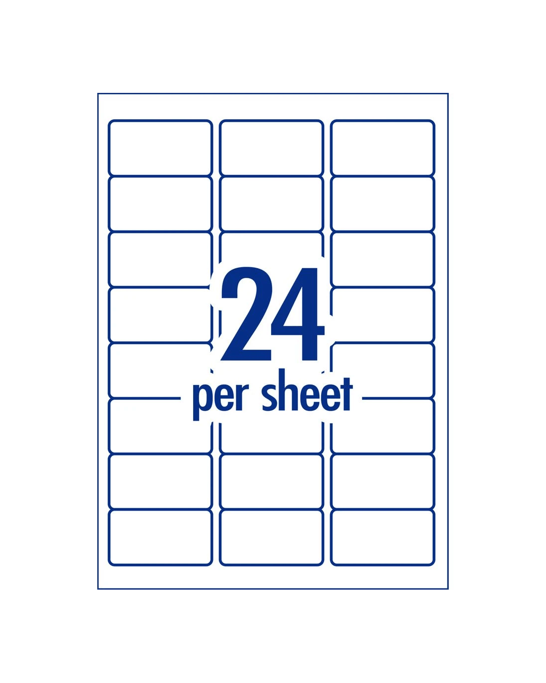 - There are 240 blank matt white labels in a pack of 24 labels per sheet in a size of 64 x 33.8mm and 10 sheets per pack.