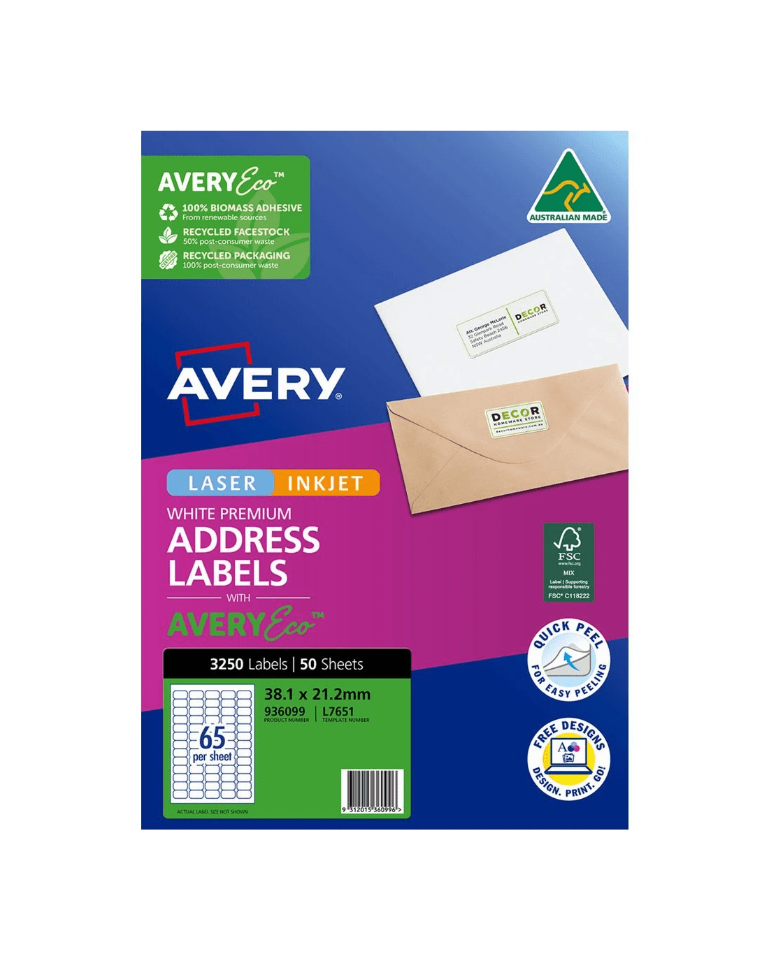 Sold by OfficeworksAvery Premium White Addressing Labels AveryEco 65UP 50 Sheets