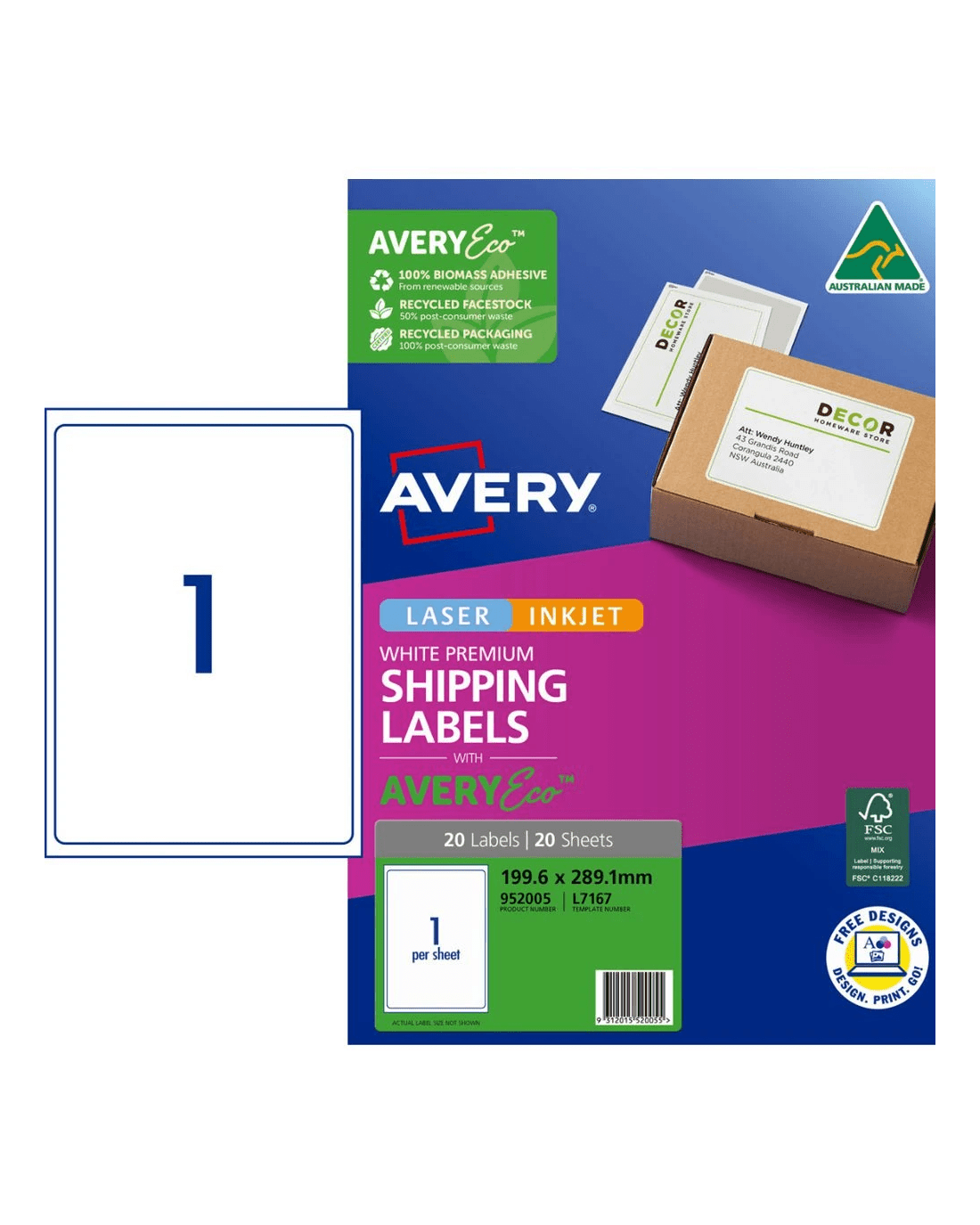 Sold by OfficeworksAvery Premium White Shipping Labels AveryEco 1UP 20 Sheets